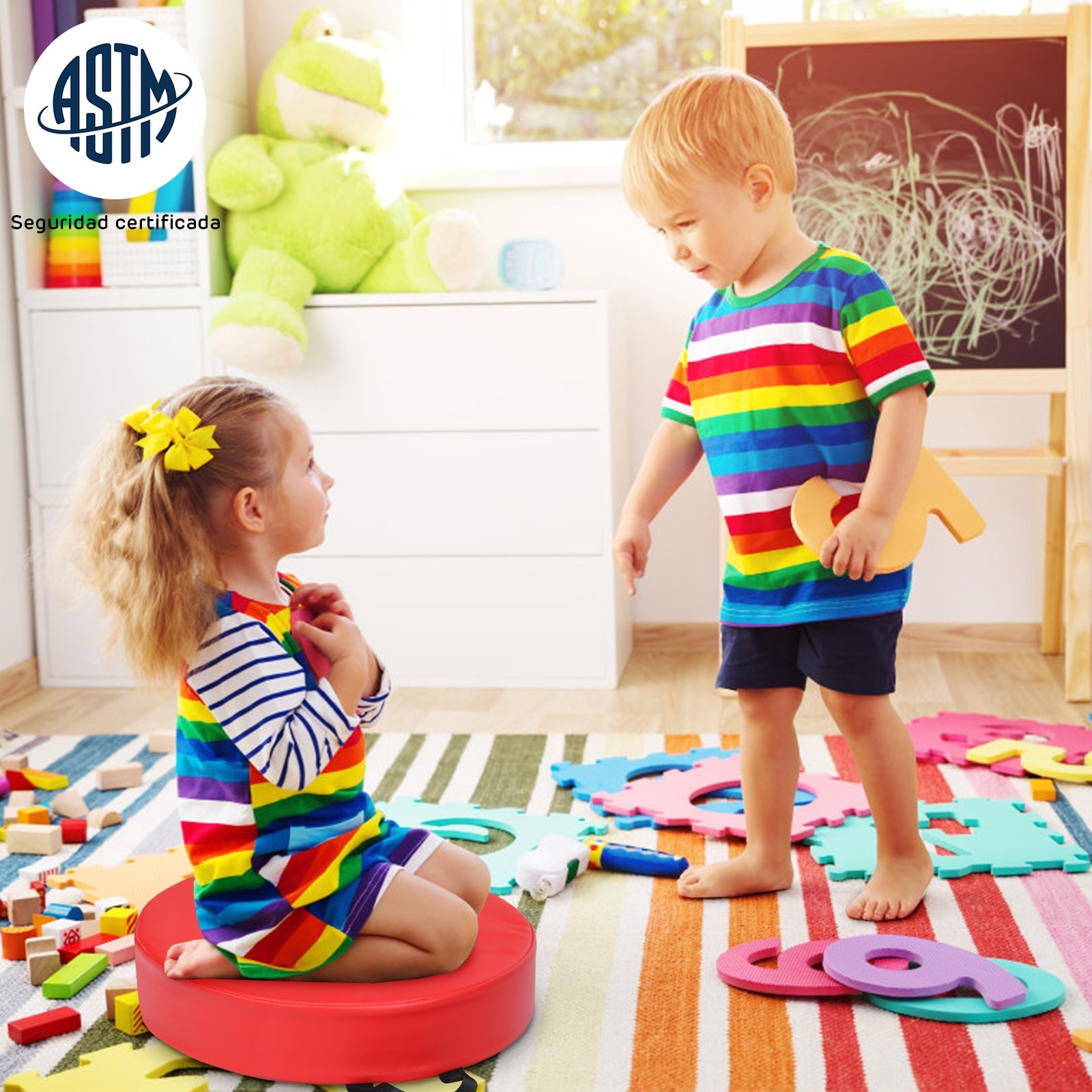 Conjunto de 6 almofadas redondas de chão para crianças de 38 cm (15 polegadas) – Multicoloridas