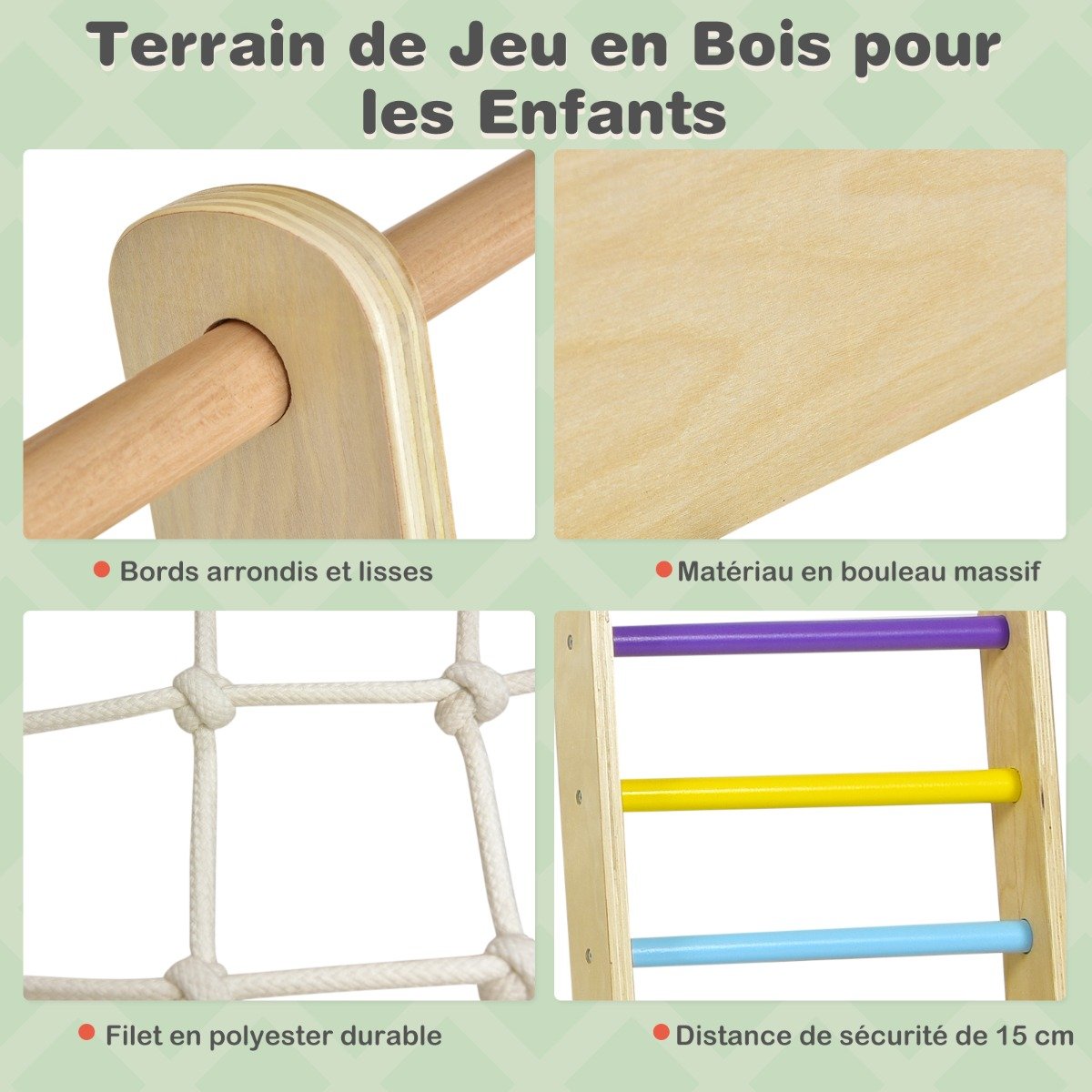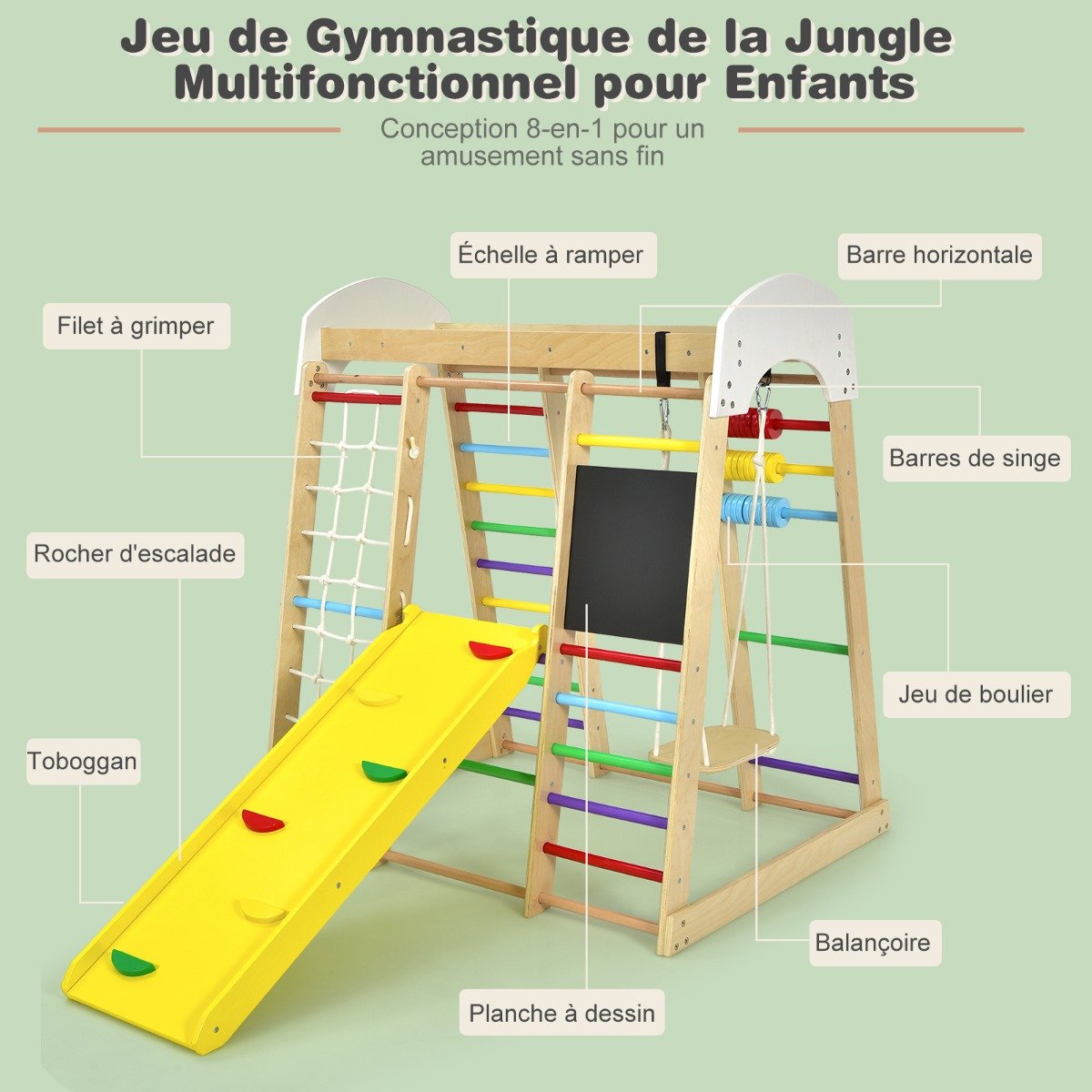Este conjunto de escalada multifuncional certamente encantará seus filhos! Graças à madeira de alta qualidade, é resistente e durável, e cada peça pode suportar aproximadamente 50 kg. A construção robusta e as conexões seguras entre as peças tornam seu uso muito seguro. O design 8 em 1 oferece diversão sem fim às crianças, desenvolvendo força física, criatividade e outras habilidades. Nosso conjunto de brinquedos é adequado para uso interno e externo, criando memórias maravilhosas da infância! Atributos: Conjunto de escalada 8 em 1: Nosso conjunto de escalada inclui um escorregador, rocha de escalada, escada, rede de escalada, postes, prancheta, ábaco e um balanço, proporcionando às crianças diversão sem fim. O escorregador pode ser fixado em qualquer um dos lados, conforme necessário. Alta qualidade e excelente acabamento: Feito de madeira de faia e bétula de alta qualidade, o conjunto é extremamente durável. A superfície laqueada é lisa e, portanto, muito segura. Construção de madeira sólida e estável: A estrutura triangular robusta garante alta estabilidade geral. A capacidade máxima de carga é de 50 kg. Além disso, as conexões seguras entre as peças garantem a segurança. Perfeito para crianças: Este conjunto de escalada é adequado para crianças de 3 anos ou mais. Brincar promove equilíbrio, habilidades motoras, coragem e muito mais. Pode ser usado na sala de jogos, sala de estar ou quarto de crianças e é um ótimo companheiro para seus pequenos. Escopo de entrega e montagem: Este produto será entregue em dois pacotes no mesmo dia. Se você tiver alguma dúvida, sinta-se à vontade para entrar em contato conosco. A superfície lisa e à prova d’água é fácil de limpar com um pano úmido. Características: Brinquedo de escalada 8 em 1 oferece diversão sem fim para as crianças Madeira sólida e construção triangular resistente garantem estabilidade geral Superfície lisa protege as crianças de ferimentos acidentais O escorregador reversível permite que as crianças escalem e deslizem Presente perfeito para promover as habilidades motoras, o equilíbrio e a coragem das crianças Tinta segura e inodora para proteger as crianças Para casa, jardim de infância, quarto de crianças Capacidade de carga é de até 50 kg Fácil montagem com instruções detalhadas Adequado para crianças de 3 anos ou mais