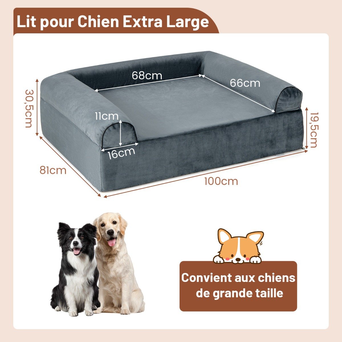 A cama ortopédica para cães é a solução perfeita para fornecer suporte superior ao seu amigo peludo. Nossa cama refrescante para cães adota um design inovador reversível de dupla face. A adição de espuma viscoelástica com gel refrescante mantém seu cão fresco e confortável, tornando-a a cama ideal para uso durante todo o ano. E a espessa camada inferior de espuma de alta densidade fornecerá suporte ideal para as articulações do seu amigo peludo. Sua construção de alta qualidade a torna adequada para cães de todas as idades e tamanhos, promovendo melhor saúde articular e muscular. Além disso, as bordas de 3 lados permitem que seus cães se enrolem confortavelmente em ambos os lados. Além disso, a capa removível e lavável à máquina permite fácil limpeza e manutenção, enquanto o recurso à prova d’água protege contra urina. Atributos: 【Suporte de espuma de camada dupla】O sofá-cama para cães apresenta um design reversível de 2 camadas. Com espuma de memória com infusão de gel refrescante, a cama ortopédica para cães pode ajudar a dissipar o calor e promover um sono profundo. Enquanto isso, a espuma de memória de alta densidade fornecerá suporte adequado e acalmará as articulações pressionadas. 【Sofá-cama para cães com bordas】A cama de espuma de memória para cães tem bordas de 3 lados que servem como um apoio de cabeça aconchegante, preenchido com espuma espessa, especialmente projetada para fornecer tração física e dar aos seus animais de estimação uma posição confortável para dormir. Para que seus cães possam se esticar completamente. 【Capa macia e fácil de limpar】Com uma capa de poliéster, a cama refrescante para cães aumenta o conforto com uma superfície de dormir acolchoada macia. E o tecido de qualidade é resistente ao desgaste para uso durável. Além disso, a capa com zíper é removível e lavável à máquina, facilitando a manutenção para você. 【Fundo antiderrapante para segurança】Equipado com um fundo antiderrapante de partículas de silicone, a cama ortopédica para cães permanecerá estável e imóvel mesmo durante brincadeiras ativas ou sono agitado. Com isso, seus animais de estimação podem desfrutar de um sono tranquilo sem perturbações. 【Ampla gama de aplicações】A cama extra grande para cães, medindo 102 cm x 82 cm x 30,5 cm, é adequada para a maioria das raças de cães. Graças ao seu design confortável, a cama de espuma para animais de estimação é o presente perfeito para cães com dores nas articulações. Além disso, a elegante cor cinza permite que ela se integre harmoniosamente à decoração do seu quarto.