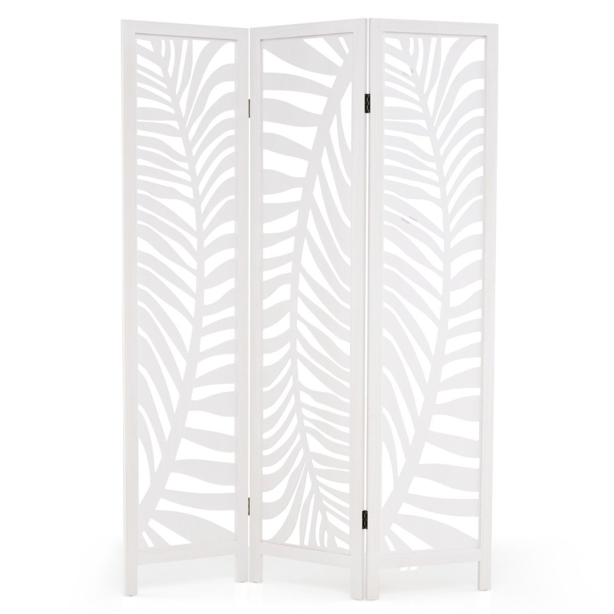 Procurando adicionar estilo e privacidade ao seu espaço? Este elegante biombo de 3 painéis apresenta lindos padrões de folhas que realçarão qualquer ambiente e criarão separação instantânea em quartos, escritórios ou salas de estar. Simplesmente desdobre e monte em segundos, sem ferramentas. Quando não estiver em uso, ele se dobra para fácil armazenamento. Feito de madeira natural de paulownia e painéis de MDF de alta qualidade, é leve, porém durável. Atributos: Biombo de 3 painéis: Este biombo de 3 painéis mede 121 cm de largura e 170 cm de altura, permitindo separar espaços abertos ou criar privacidade em áreas compartilhadas. Os elegantes padrões de folhas adicionam um elemento decorativo e naturalmente melhoram a aparência do seu quarto. Fácil de usar e armazenar: Pronto para usar sem montagem, esta tela de privacidade dobrável pode ser montada rapidamente e usada com flexibilidade. Seu design triplo permite fácil transporte e armazenamento com economia de espaço em cantos ou armários. Construção em madeira maciça: Feito com uma estrutura reforçada feita de madeira natural de paulownia, este biombo independente garante excelente estabilidade e durabilidade. Painéis de MDF de alta qualidade com recortes vazados também garantem robustez e uma aparência elegante. Posicionamento flexível e seguro: Equipada com quatro dobradiças duplas, a divisória pode ser aberta em qualquer ângulo ou formato para se adaptar perfeitamente ao layout do seu ambiente. Graças aos pés de apoio estáveis e almofadas de borracha antiderrapantes, ela permanece firmemente no lugar durante o uso. Aplicação versátil: A divisória de ambientes de 3 painéis é ideal para quartos, salas de estar e espaços de trabalho, criando rapidamente zonas silenciosas para relaxamento ou trabalho. Também é perfeita para lojas, restaurantes ou escritórios, oferecendo uma solução versátil para separação e decoração de ambientes. Características: Grande altura para separação visual eficaz Design triplo que economiza espaço para fácil realocação e armazenamento Estrutura robusta feita de madeira de Paulownia garante segurança O elegante padrão de folhas adiciona calor visual e charme Também é ideal como fundo decorativo em lojas ou estúdios Dobradiças bidirecionais permitem ângulos individuais Almofadas antiderrapantes para os pés protegem o piso Não é necessária montagem para uso imediato