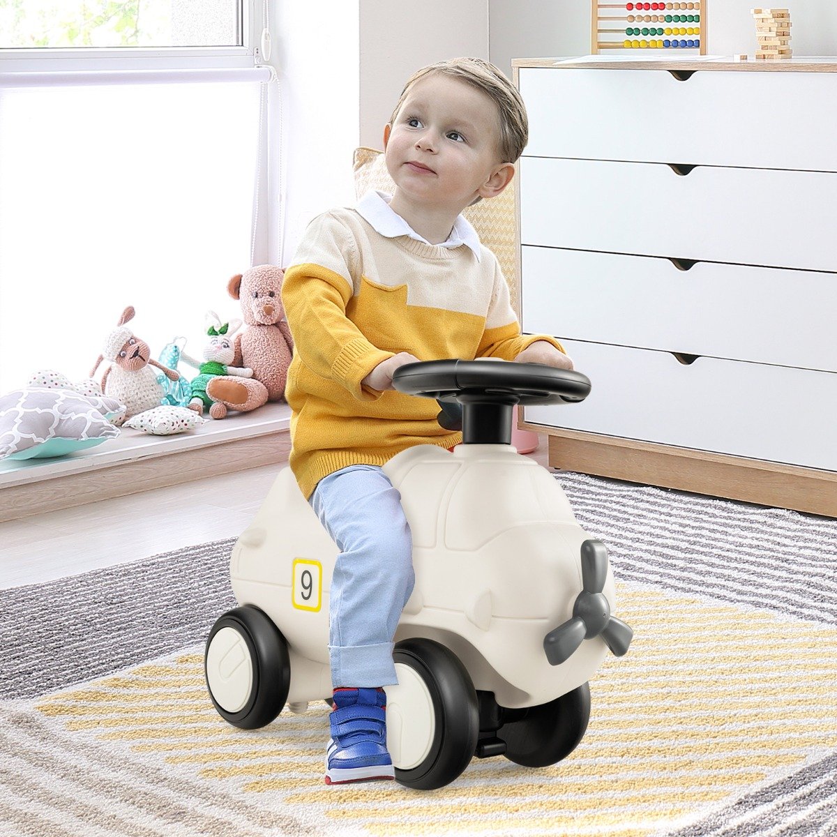 Carrinho de brinquedo infantil em formato de avião, com hélice fofa e volante flexível.