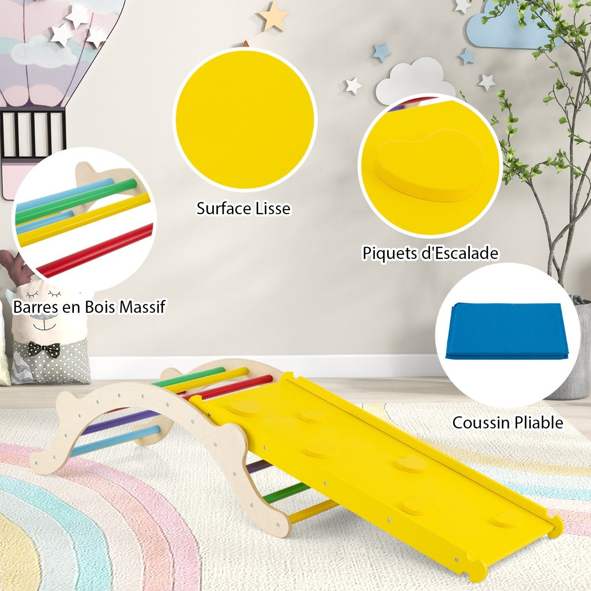Arco de escalada de madeira 3 em 1 com rampa para crianças pequenas – Multicolorido