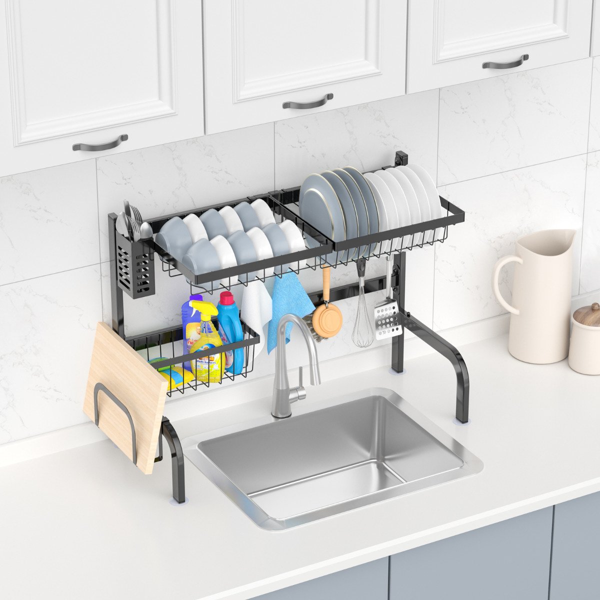 Escorredor de louça ajustável de 2 níveis para pia, ideal para bancada de cozinha.