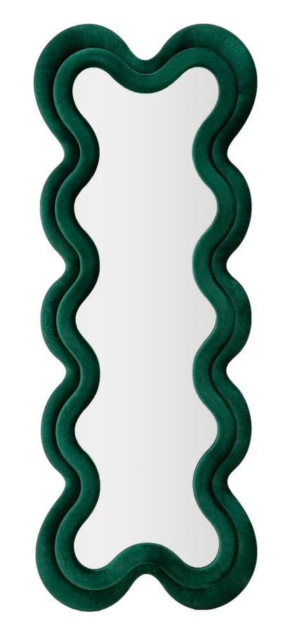 Espelho de parede com moldura em madeira forrada a veludo verde, ideal para um toque chique e vintage em mobiliário doméstico ou em ambientes de design requintado.