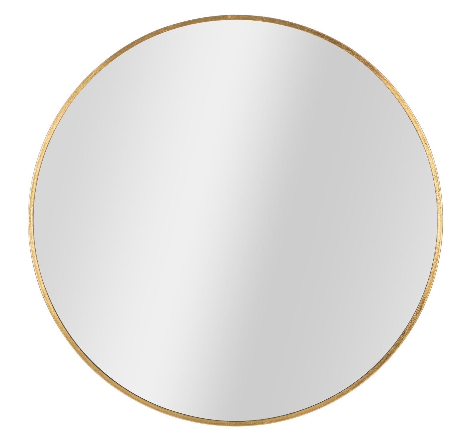 Espelho de parede redondo com moldura dourada. As linhas minimalistas e essenciais dão um toque de classe a qualquer ambiente.