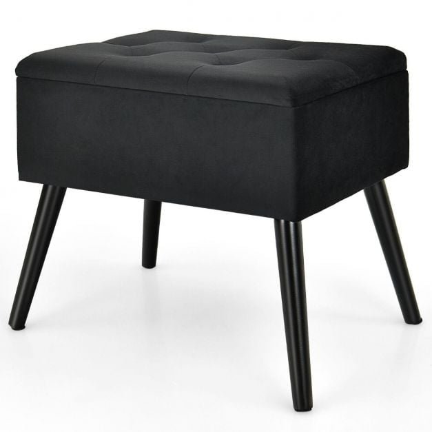 O pufe alcança uma aparência agradável e alta praticidade, e será uma peça de mobiliário necessária em sua casa. Projetado com uma tampa articulada, este banquinho possui uma função de armazenamento para acomodar seus vários itens, como livros, cachecóis, meias ou outros acessórios. Ele também pode servir como um banquinho de vaidade ou banquinho de troca de sapatos em tempos comuns. Equipado com 4 pernas de madeira maciça, é dotado de alta estabilidade para grande capacidade de peso. E a superfície de veludo combinada com um assento acolchoado também lhe dá um assento extremamente confortável. Se você está procurando por tal produto, não hesite em fazer um pedido!     Tampa articulada e função de armazenamento: O espaço de armazenamento oculto deste pufe o torna excelente. O banquinho é equipado com uma tampa articulada, que é de alta qualidade e capaz de suportar várias vezes de aberturas e fechamentos. É uma ótima solução de armazenamento para organizar seu quarto, como brinquedos, livros, roupas, controle remoto, etc. Superfície de veludo e almofada grossa: este pufe de armazenamento se beneficia de material de veludo premium, que é amigo da pele e fornece um lugar de luxo para sentar. Além disso, a almofada do assento generosamente estofada é super grossa e macia e também pode adicionar uma experiência de usuário satisfatória. Excelente artesanato e pernas de madeira maciça: o apoio para os pés é construído para um serviço duradouro. 4 pernas são equipadas com almofadas para os pés, que podem efetivamente reduzir o ruído quando você o move. Eles são feitos de madeira de pinho maciça, garantindo alta estabilidade sem rachaduras. Além de placas espessas, o pufe moderno desfruta de uma construção robusta com grande capacidade de peso. Uso diversificado para ampla aplicação: o pufe de veludo é voltado para suas diferentes necessidades. Você pode usá-lo como um banquinho na entrada para trocar de sapatos. Ou você pode considerá-lo como uma solução de armazenamento. Também pode servir como um prático apoio para os pés, oferecendo um lugar para apoiar os pés quando você estiver sentado em um sofá ou cadeira de balanço. Aparência moderna: a superfície aveludada e a cor elegante conferem uma imagem luxuosa à sua casa. Este banco com tampo articulado combina com diferentes estilos decorativos e é perfeito para seu quarto, sala de estar, closet ou hall de entrada.