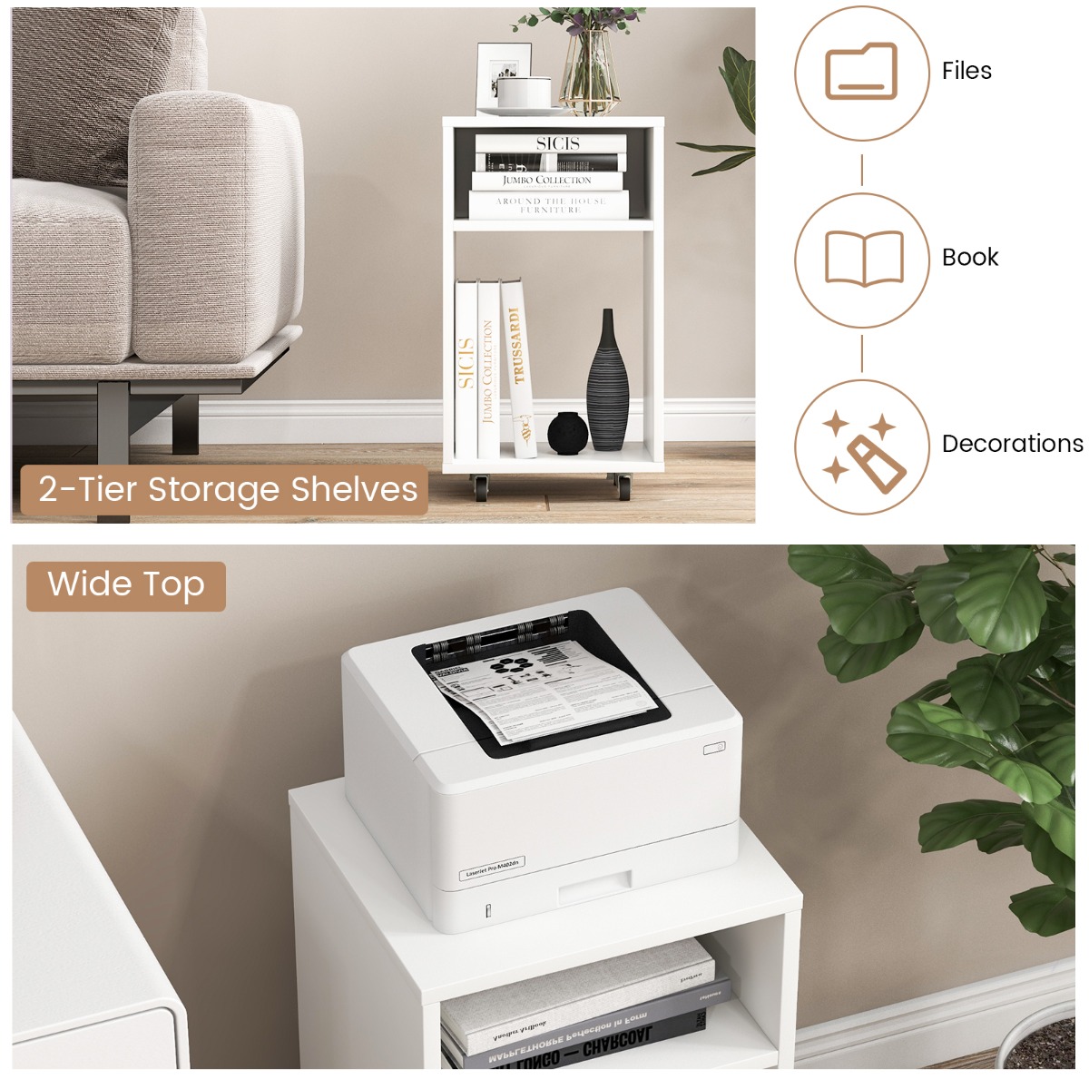 Armário de Arquivo Móvel, Suporte de Madeira para Impressora, Organizador de Armazenamento Vertical – Branco