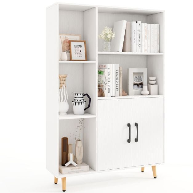Existem 5 compartimentos abertos para exibir livros e itens colecionáveis, com um armário de 2 portas abaixo para armazenar discretamente desordem ou itens pessoais. Feito com materiais de alta qualidade e apoiado por pernas de metal robustas, a estante de chão apresenta durabilidade e estabilidade. Além disso, 2 kits anti-tombamento para ancorá-lo com segurança à parede, proporcionando paz de espírito. Ideal para quem procura otimizar seu espaço ao mesmo tempo em que adiciona um toque de estilo moderno, esta estante atende a uma ampla gama de necessidades. Armazenamento aberto e oculto: esta estante de chão oferece amplo espaço de armazenamento com seus 5 compartimentos abertos, ideal para exibir livros, artesanato ou decorações. Além disso, o armário de 2 portas fornece espaço de armazenamento oculto para itens pessoais. Construção robusta: a estante fica em pernas de metal resistentes para uma base confiável. Além disso, almofadas antiderrapantes aumentam a estabilidade e evitam arranhões. Esta estante pode segurar com segurança uma variedade de itens, com uma capacidade de peso de 85 kg. Design com Prioridade à Segurança: 2 kits antitombamento fixam o armário de armazenamento com segurança à parede, evitando qualquer movimento ou tombamento indesejado, tornando-o uma escolha segura para casas com crianças e animais de estimação. Opções Elegantes e Versáteis: O design moderno e as linhas retas conferem um visual elegante e moderno a qualquer ambiente. Seja para guardar itens essenciais de cozinha, organizar materiais de escritório ou criar uma biblioteca pessoal, este organizador de armazenamento versátil é a escolha ideal. Design Prático de Acessórios: Dobradiças com fechamento suave garantem um fechamento suave e silencioso, evitando batidas. As alças práticas oferecem uma pegada confortável para abrir e fechar as portas do armário sem esforço, enquanto um batente as mantém no lugar.