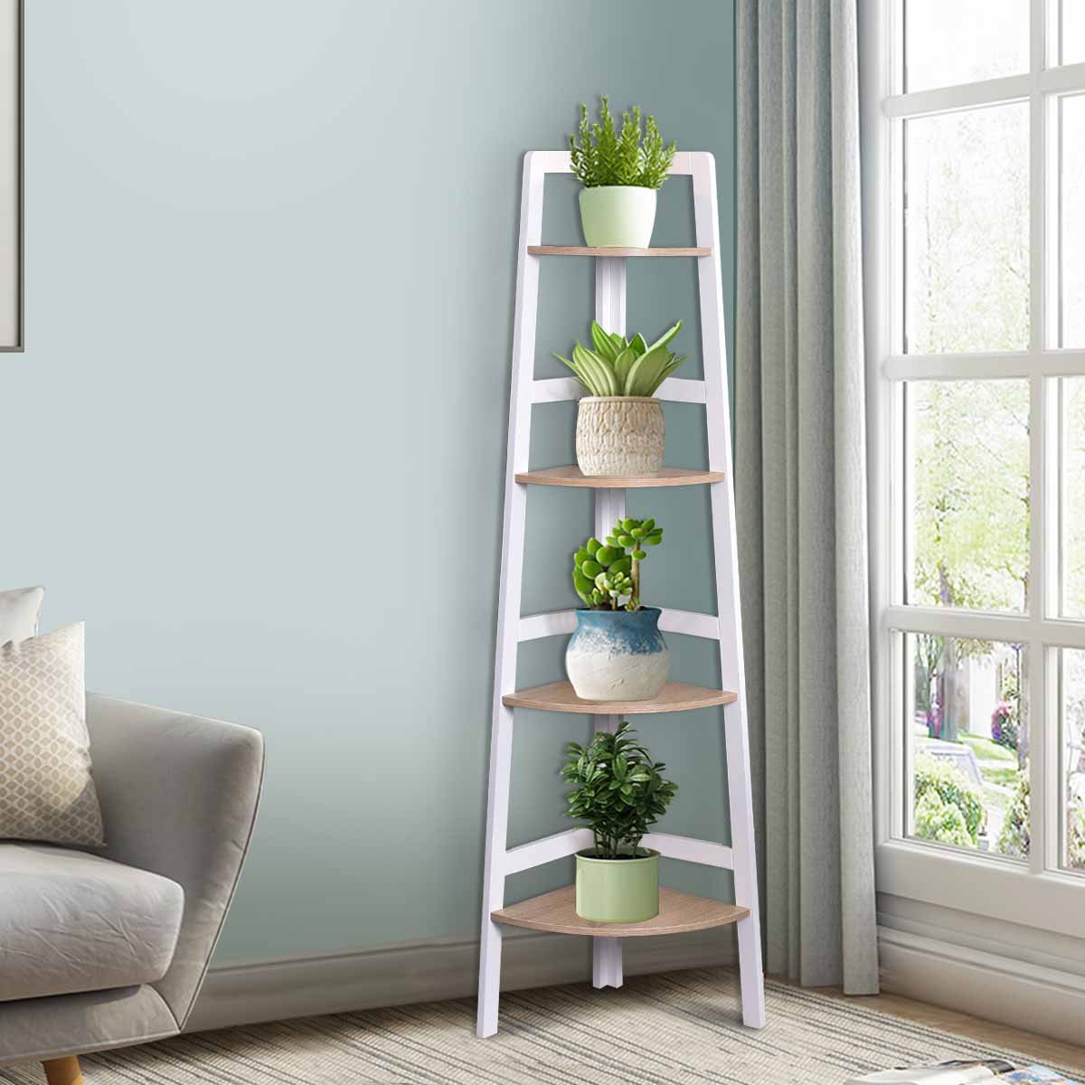 Estante de canto com 4 prateleiras, versátil, em MDF de alta qualidade, 32x32x138cm