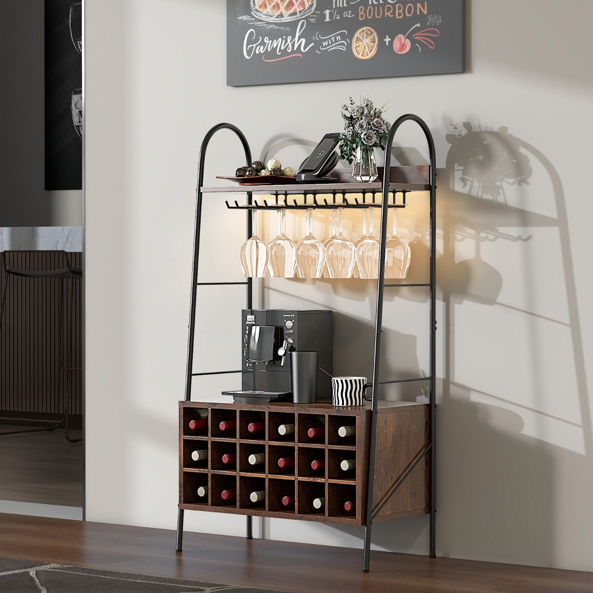Estante de padeiro com adega removível e 5 fileiras de suportes para taças – Marrom rústico