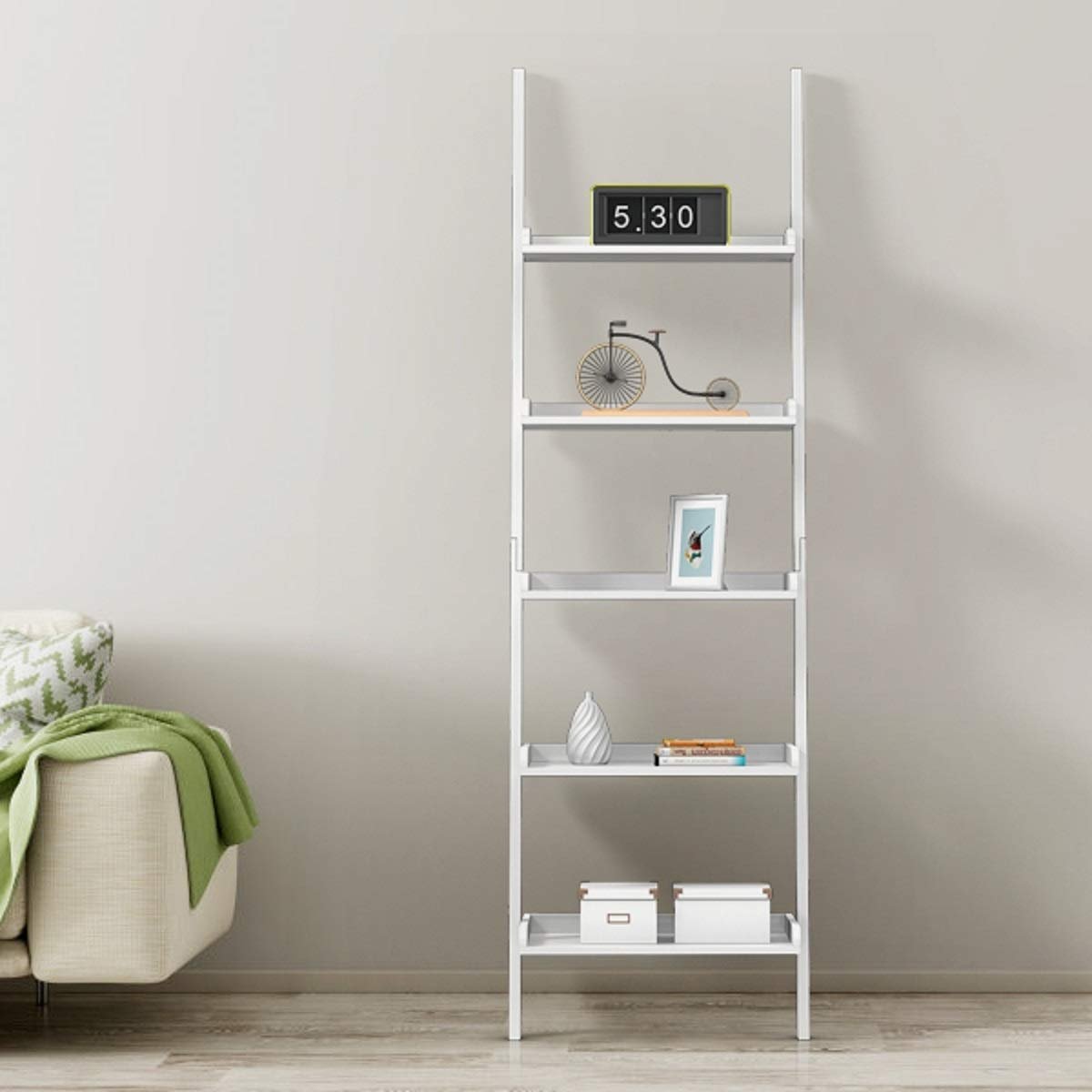 Estante de parede em formato de escada com 5 níveis para plantas e livros – Branca