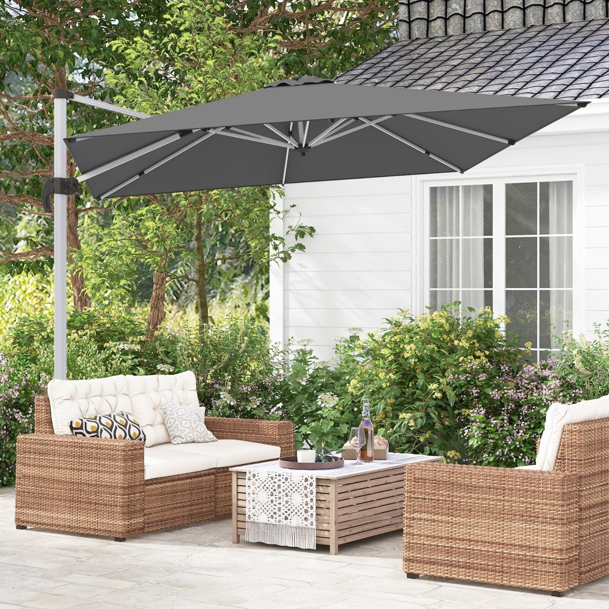 Guarda-sol de pátio de 300 cm com braço articulado, rotação de 360° e inclinação ajustável – Cinza