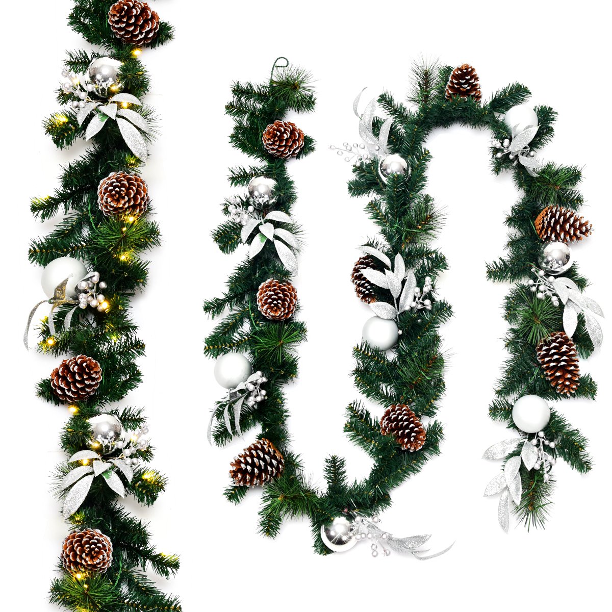 Guirlanda de Natal de 2,7 m com 50 luzes LED e pinhas para decoração.