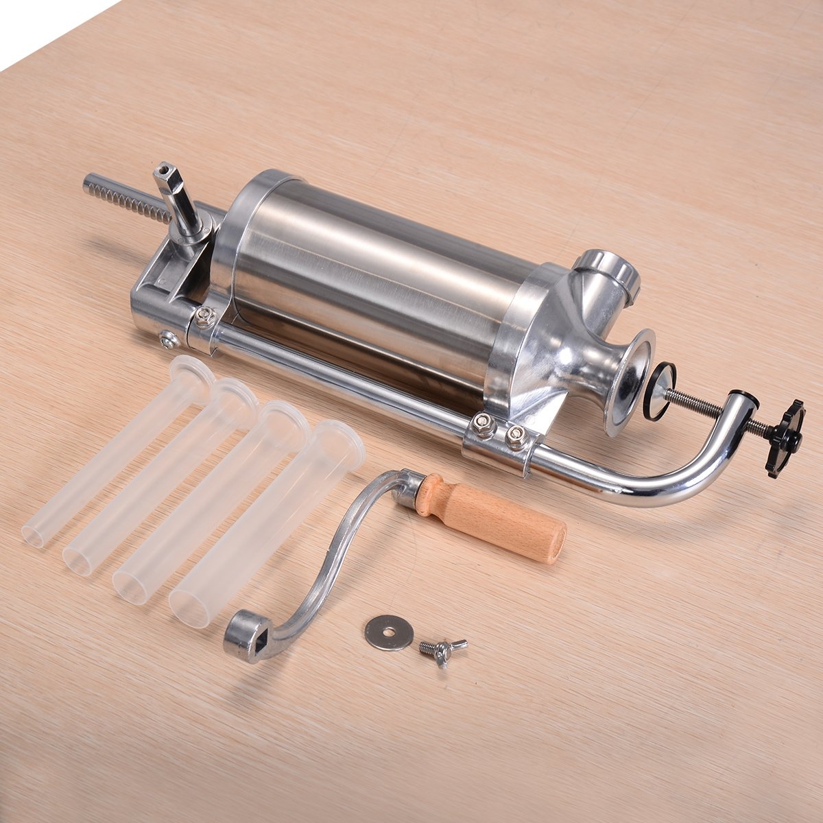 Este é o nosso novíssimo fabricante de salsichas verticais de aço inoxidável, perfeito para fazer salsichas, salsichas quentes, kielbasa, cachorros-quentes, bratwurst e muito mais! Feito de aço inoxidável e alumínio de alta qualidade, este fabricante de salsichas é durável o suficiente para uso doméstico! É fácil de operar e fácil de limpar. Além disso, vem com tubos de salsicha de 4 tamanhos, permitindo que você faça salsichas em tamanhos diferentes. Com este enchimento, você pode fazer muitas comidas deliciosas. Compre o seu hoje! Novo e de alta qualidade O design vertical ocupa menos espaço Construção durável em aço inoxidável e alumínio de alta qualidade Fácil de operar e limpar Vem com tubos de salsicha de 4 tamanhos Nível de ruído livre Ideal para uso doméstico ou comercial