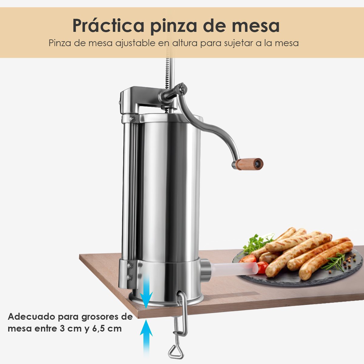 Novo e de alta qualidade Ocupa menos espaço Aço inoxidável e alumínio de alta qualidade Construção durável Fácil de operar e limpar Vem com 6 tubos de salsicha de tamanho Nível de ruído livre Ideal para uso doméstico ou comercial