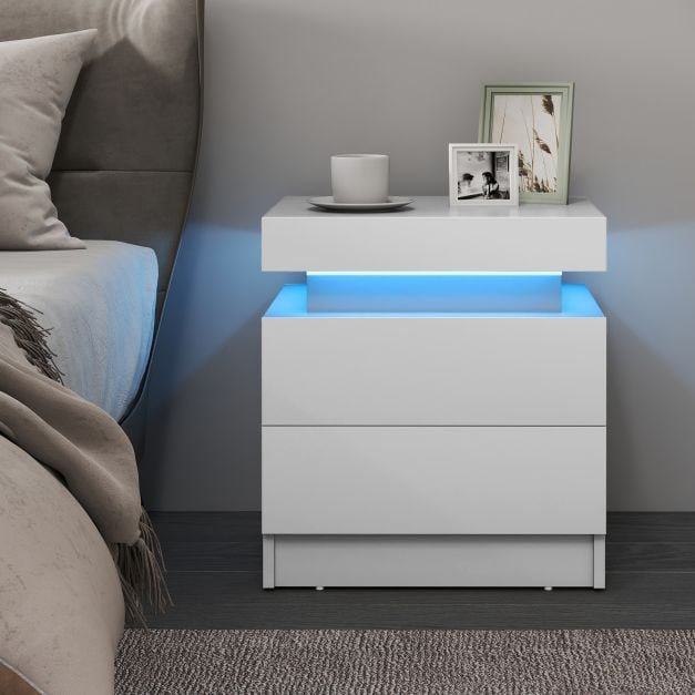 Mesa de cabeceira LED com 2 gavetas – Preto