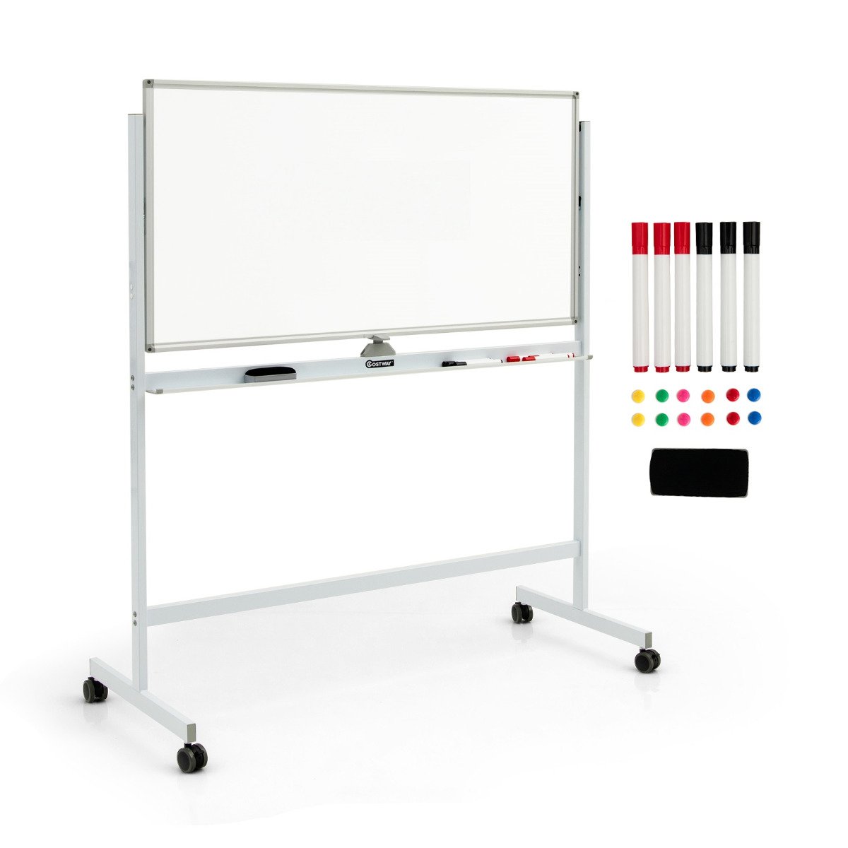 Quadro branco magnético móvel de dupla face com ímãs, canetas e apagador – Branco