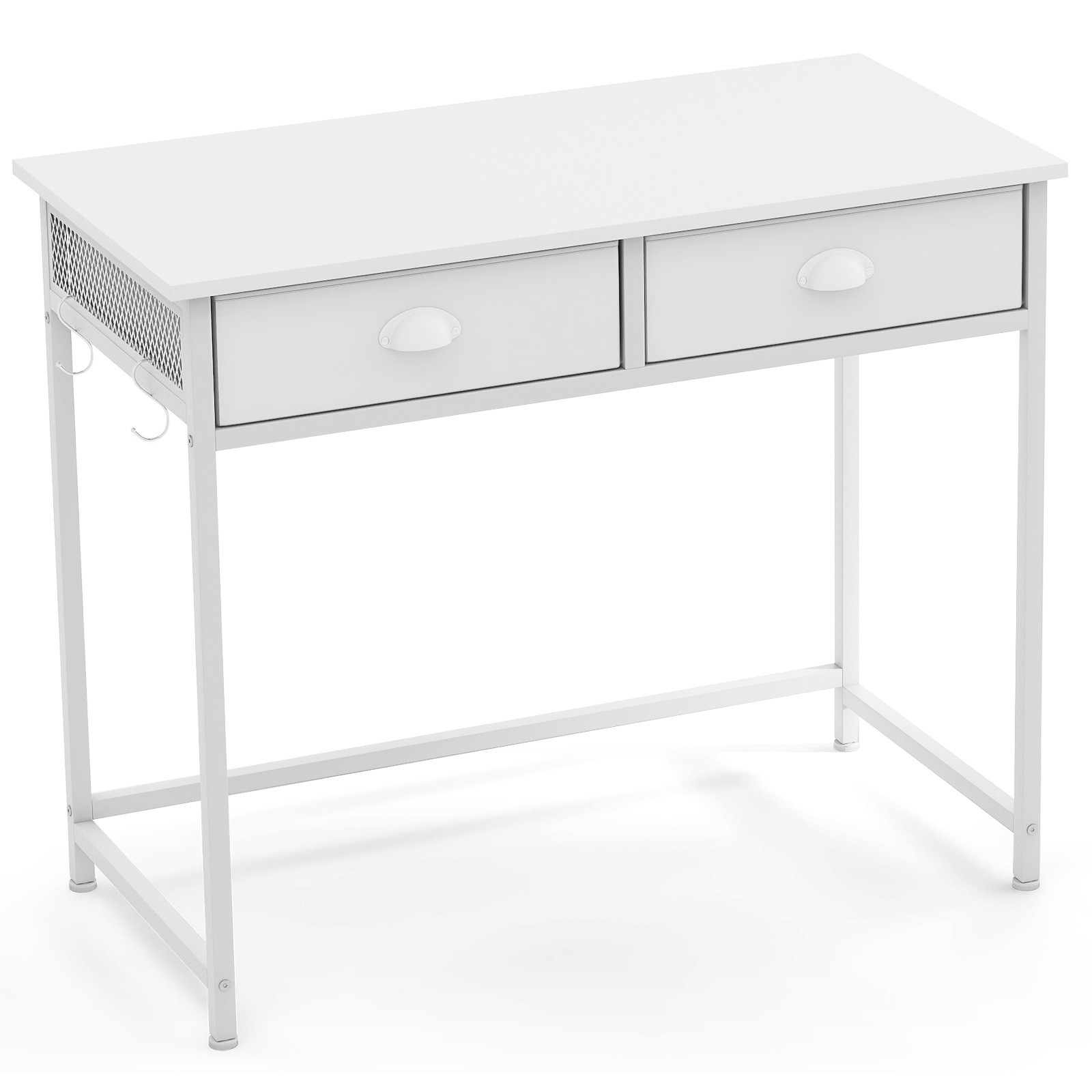 Mesa de computador compacta para escritório em casa com 2 gavetas de tecido – Branca