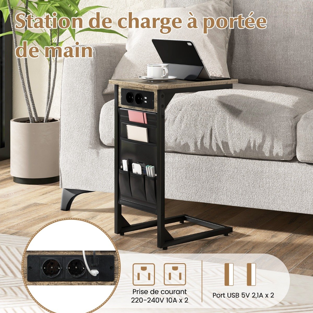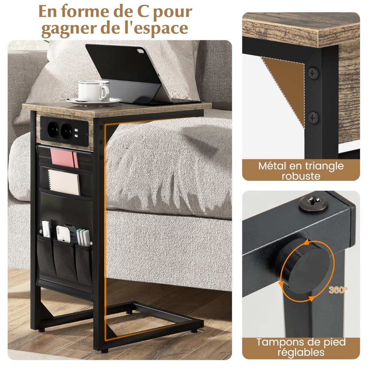 Apresentamos o nosso novo e versátil conjunto de mesas laterais! Estes móveis foram concebidos para facilitar a sua vida com as suas características inovadoras. Carregue os seus dispositivos eletrónicos de forma prática com a estação de carregamento integrada, que possui 2 tomadas (220-240 V, 10 A) e 2 portas USB (5 V, 2,1 A). Não precisa de se preocupar com um cabo de alimentação curto, pois o cabo de carregamento desta mesa lateral tem um comprimento generoso de 200 cm. Outro detalhe que vale a pena mencionar é o espaço de arrumação lateral de três camadas, que possui dois bolsos grandes e três bolsos pequenos. O design fino e elegante em forma de C não só economiza espaço, como também oferece espaço de arrumação adicional. O tampo espesso e sem rebarbas, a estrutura metálica reforçada e as almofadas ajustáveis ​​para os pés garantem estabilidade. A montagem desta mesa lateral é muito fácil graças à estrutura simples e às instruções detalhadas. Não espere mais, encomende hoje mesmo! Atributos: Estação de carregamento prática: A mesa lateral é adequada para a maioria dos produtos eletrônicos e possui uma estação de carregamento com 2 tomadas (220-240 V, 10 A) e 2 portas USB (5 V, 2,1 A). Ela também possui um cabo de alimentação de 200 cm de comprimento, o que permite uma grande área de instalação. Bolsos de armazenamento laterais divididos: Exceto pelo tampo largo da mesa, a mesa lateral também inclui uma bolsa de armazenamento de três camadas, que inclui 2 bolsos grandes e 3 bolsos pequenos. Claro, você pode manter tudo o que precisa ao seu alcance, mantendo tudo organizado. Formato C elegante e versátil: Com seu design funcional, porém compacto, a mesa de lanche em formato C otimiza o uso de espaço limitado, ao mesmo tempo que fornece espaço de armazenamento adicional. Assim, você pode usá-la como mesa lateral ou mesa de cabeceira em diferentes lugares, dependendo de suas necessidades. Estrutura forte e estável: Para maior resistência, a mesa lateral foi projetada com um tampo grosso, sem rebarbas e à prova de rachaduras. Além disso, a estrutura de metal reforçada com almofadas ajustáveis ​​para os pés também está incluída, equipada com metal triangular adicional para estabilizar ainda mais toda a mesa lateral. Instalação sem complicações: Graças à estrutura simples e às instruções detalhadas, toda a montagem é incrivelmente direta. Por esse motivo, todo o processo não levará muito tempo. Características: Estilo industrial que se integra perfeitamente ao seu interior Oferece amplo espaço de armazenamento lateral, consistindo em 2 bolsos grandes e 3 bolsos pequenos Almofadas ajustáveis ​​para os pés fornecem melhor estabilidade em terrenos irregulares O pacote contém 2 mesas laterais para a sala de estar, quarto ou escritório Projetado com uma estação de carregamento que inclui 2 tomadas e 2 portas USB O tampo da mesa retangular oferece bastante espaço para café, laptops ou revistas Vem com metal triangular adicional que aumenta a estabilidade geral Estrutura especial em forma de C que se adapta melhor a sofás e camas e cria mais espaço no chão