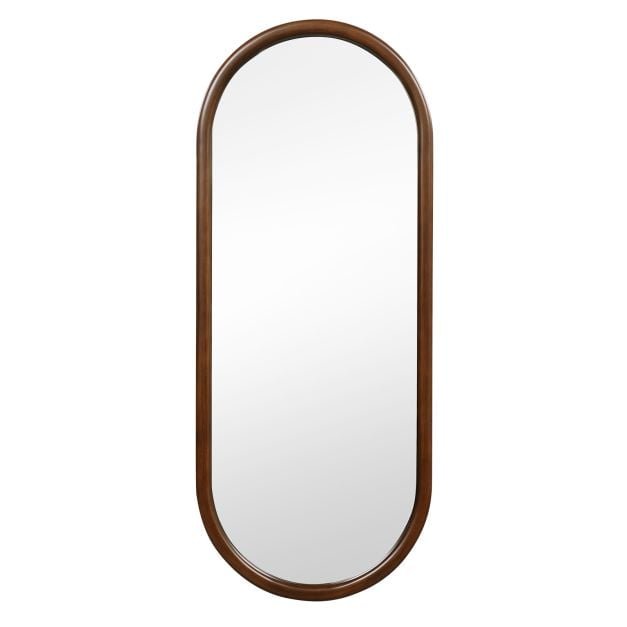Espelho de parede vertical moderno oval de 110 x 45 cm com moldura de madeira, 110 x 45 cm, cor nogueira.