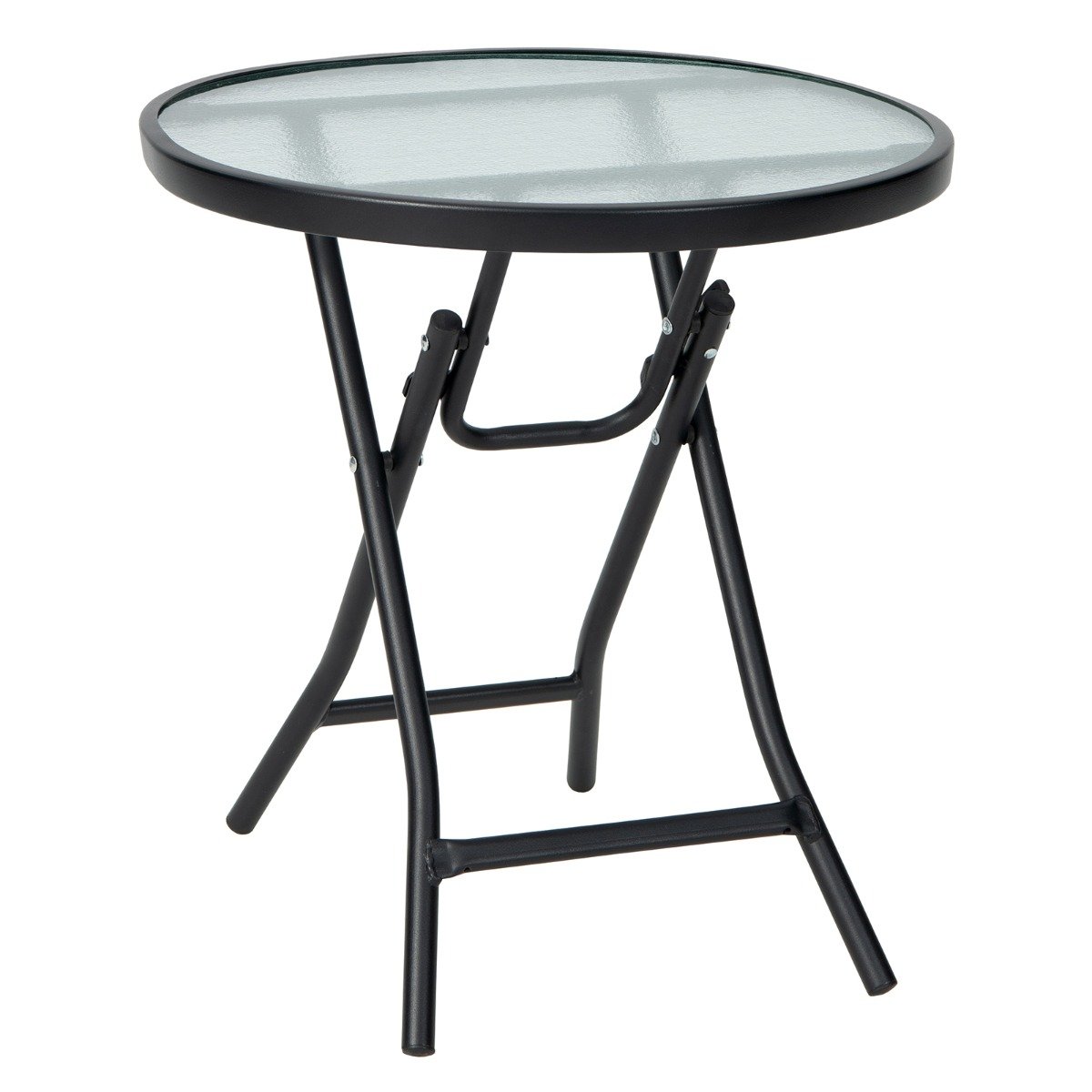 Mesa lateral dobrável para área externa com tampo de vidro temperado