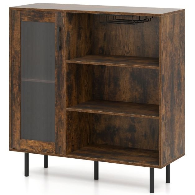 Apresentando um design industrial, ele pode se adaptar a várias funções, como um armário de armazenamento de cozinha, armário de buffet ou estação de suporte de café. Além disso, o armário de suporte de café fornece amplo armazenamento com uma bancada ampla, um armário de porta única e 3 compartimentos abertos. No interior, uma prateleira ajustável de 3 níveis permite que você personalize o layout para sua configuração de bar de café. Construído com uma estrutura de madeira sólida e equipado com dispositivos anti-tombamento, este pequeno armário de bar garante segurança e durabilidade. As pernas de metal inferiores não só fortalecem a estrutura, mas também criam uma folga de 15 cm para fácil limpeza. Ponto de bala: Soluções de armazenamento espaçosas: Com uma bancada ampla, armário de porta única e 3 compartimentos abertos, este aparador oferece opções de armazenamento abundantes. Além disso, inclui 3 fileiras de suportes para taças de vinho para armazenar e exibir seus copos. Flexibilidade personalizável: A prateleira ajustável de 3 níveis deste armário de bar de café permite que você personalize o layout interno de acordo com suas necessidades, acomodando vários equipamentos e acessórios de café. Segurança e durabilidade: Como um armário de buffet confiável, ele possui uma construção em madeira sólida e vem equipado com dispositivos anti-tombamento para maior segurança. Você pode confiar em sua estrutura robusta para suportar o uso diário, mantendo seus itens seguros. Design prático: Este armário de armazenamento de cozinha possui pés de metal na parte inferior que não só reforçam a estrutura geral, mas também criam um vão livre de 15 cm. Este design cuidadoso permite que você limpe o chão facilmente. Ampla aplicação: Com um estilo industrial, esta estação de suporte para café adiciona uma estética única ao seu espaço. Seja para usá-lo como um armário de armazenamento de cozinha, armário de buffet ou estação de suporte para café, ele se adapta perfeitamente às suas diferentes necessidades.