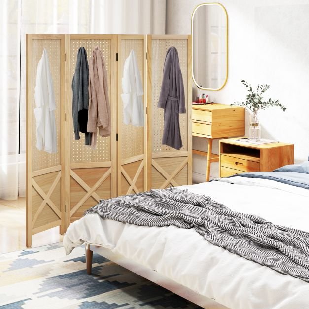 Projetado com furos compatíveis com vários ganchos, o painel perfurado permite que você personalize o espaço de exibição para ferramentas, artesanato ou joias. O design dobrável permite fácil armazenamento e posicionamento versátil. Feito com estrutura de madeira maciça, conhecida por sua alta resistência e resistência à deformação, esta tela de privacidade dobrável garante uso duradouro. Ideal para eventos, ambientes de varejo ou uso pessoal em casa ou em uma oficina, este divisor de ambiente de 144 cm é uma solução ideal. Economize tempo e aborrecimento com este suporte de exibição pré-montado.     Ponto de bala: Opção de exibição personalizada: O divisor de ambiente fornece uma opção de exibição versátil para atender às suas necessidades de forma eficaz. Cada painel é equipado com uma superfície de painel perfurado, pronta para acomodar uma variedade de ganchos para pendurar ferramentas, artesanato ou joias. Design dobrável prático: Utilizando dobradiças de metal bidirecionais, a tela de privacidade pode ser ajustada em diferentes formatos, como linha reta e em forma de W. O design dobrável também facilita a configuração rápida e o armazenamento conveniente quando não estiver em uso. Construção robusta em madeira: Feita com uma estrutura de madeira maciça, esta divisória de 4 painéis oferece durabilidade e estabilidade. Além disso, equipada com almofadas antiderrapantes para os pés, esta placa perfurada independente permanece firmemente no lugar, protegendo os pisos de arranhões. Uso em vários cenários: A tela de privacidade de 144 cm pode ser usada para separar uma sala em diferentes seções, criar um recanto de leitura aconchegante ou adicionar um toque decorativo ao seu espaço. Seja usado para uma feira de artesanato, exposição no varejo ou eventos, oferece uma solução prática. Sem necessidade de montagem: Sem necessidade de montagem, este suporte de exibição de placa perfurada está pronto para uso imediato, reduzindo o tempo de configuração e permitindo que você se concentre mais no que importa: sua exibição.
