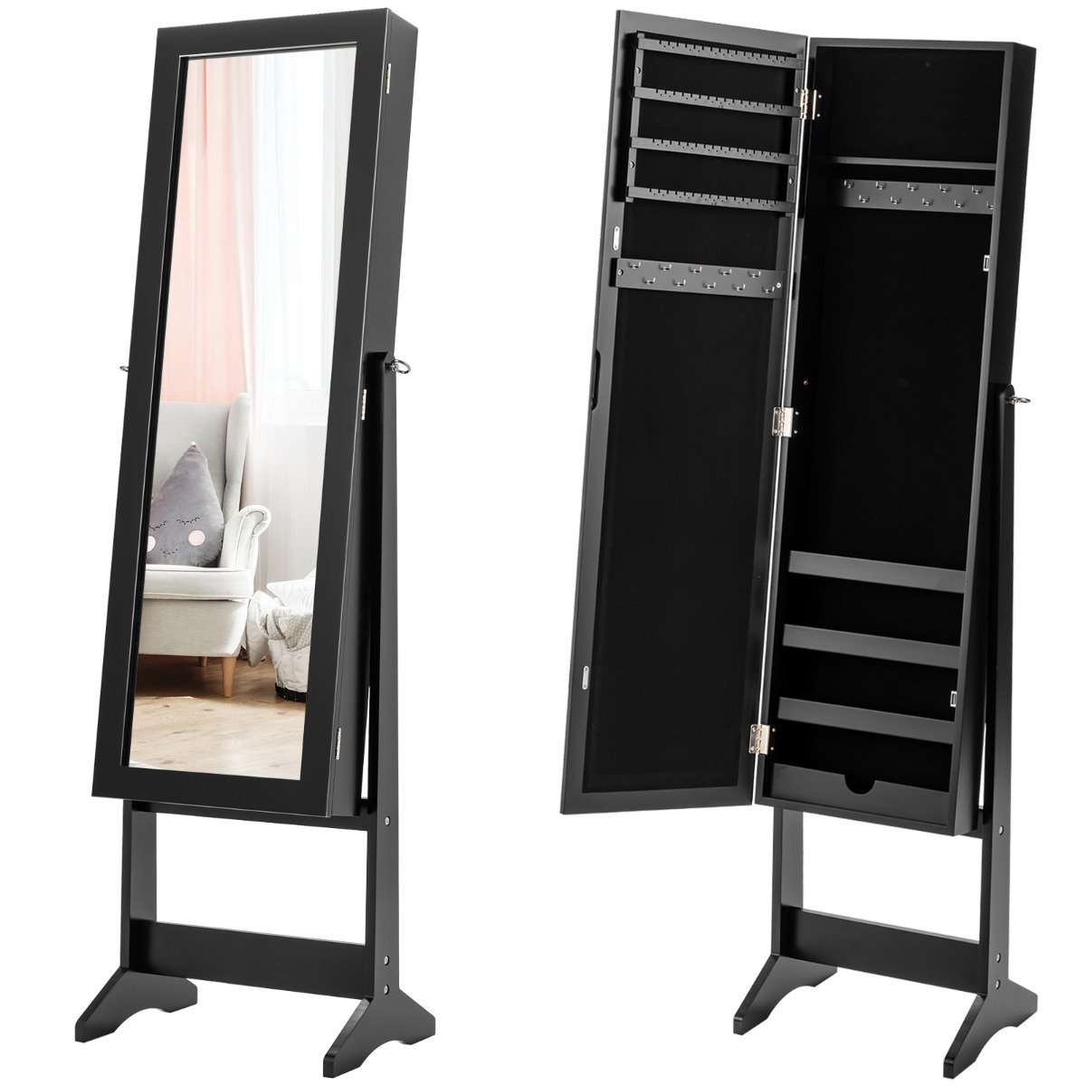 Novo Armário de Joias com Espelho, Organizador de Joias, Caixa de Armazenamento para Anéis com Suporte – Preto