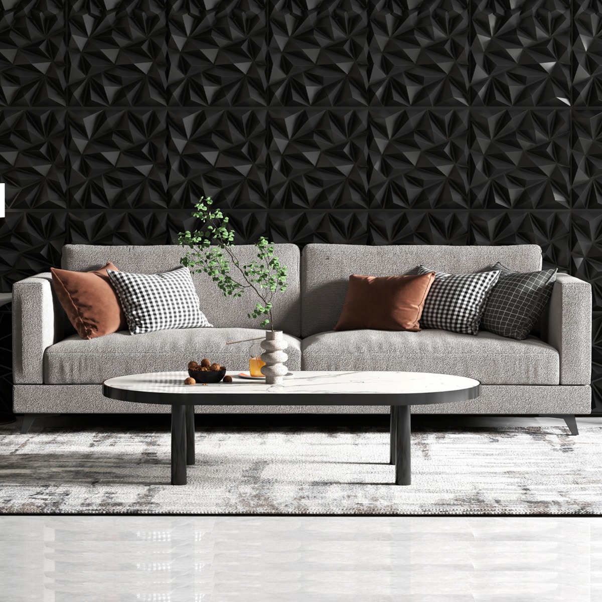 Conjunto de 20 painéis de parede 3D em PVC com padrões decorativos de diamante para pintura, autoadesivos, quadrados, para áreas de até 5 m², na cor preta.