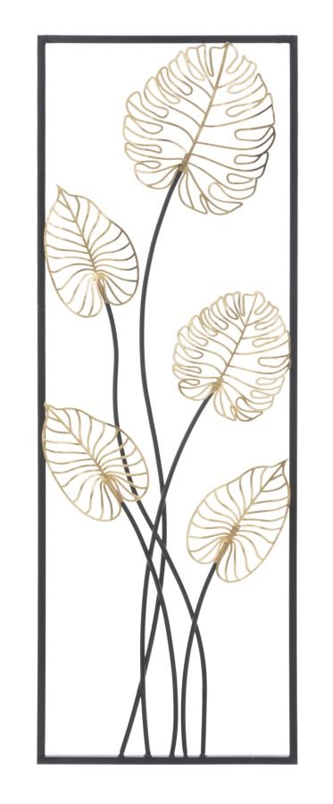 Painel retangular com folhas metálicas. Painéis 3D são a nova tendência para decoração de paredes. O metal lacado apresenta formas geométricas, vegetais ou animais que conferem um encanto glamoroso e surpreendente a qualquer ambiente