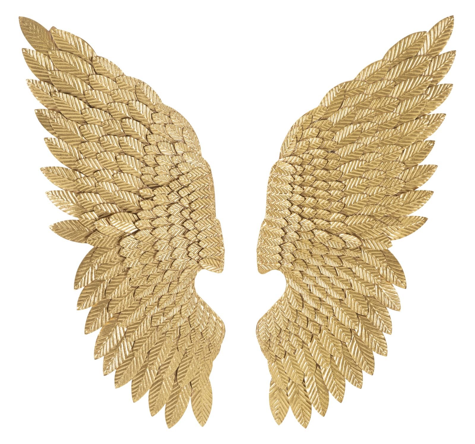 Par de painéis de parede decorativos em 3D representando um par de asas. A elegância do ouro combina perfeitamente com qualquer tipo de mobiliário.
