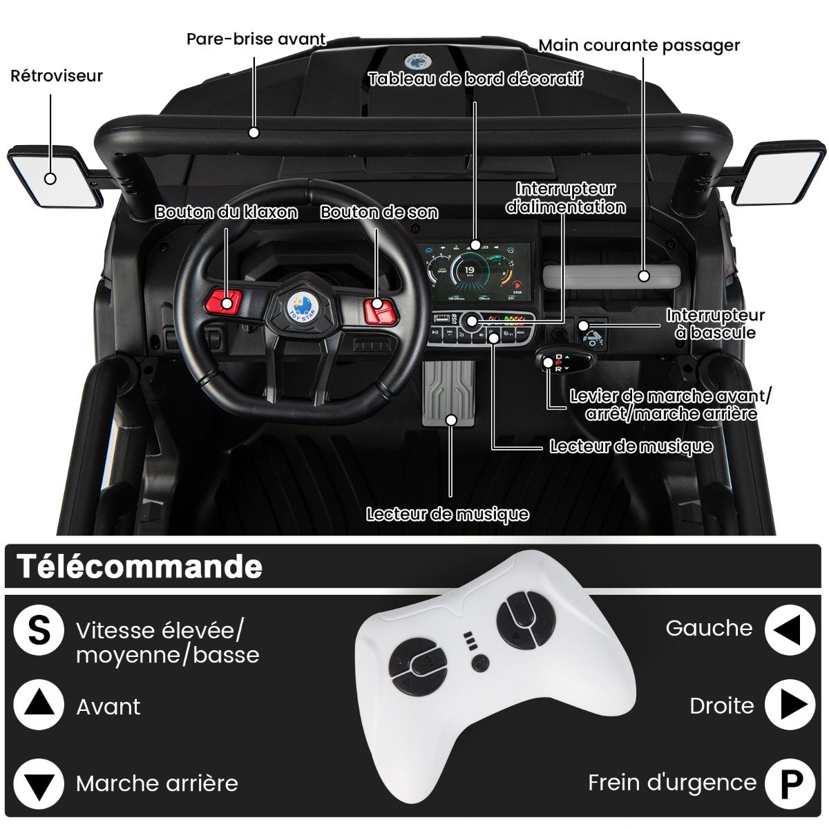 Carrinho Elétrico Infantil de 2 Lugares, 12V, 2 Motores, Controle Remoto 2.4G, Velocidade de 3 a 8 KM/H, Capacidade de Carga de 50KG, para Crianças de 3 a 8 Anos, Cor Preta