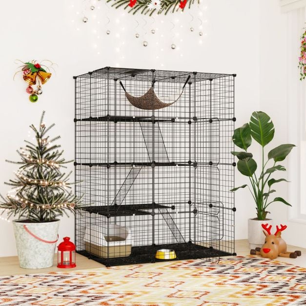 Gaiola grande para gatos com 4 níveis, escadas confortáveis tipo rede e portas – Preta