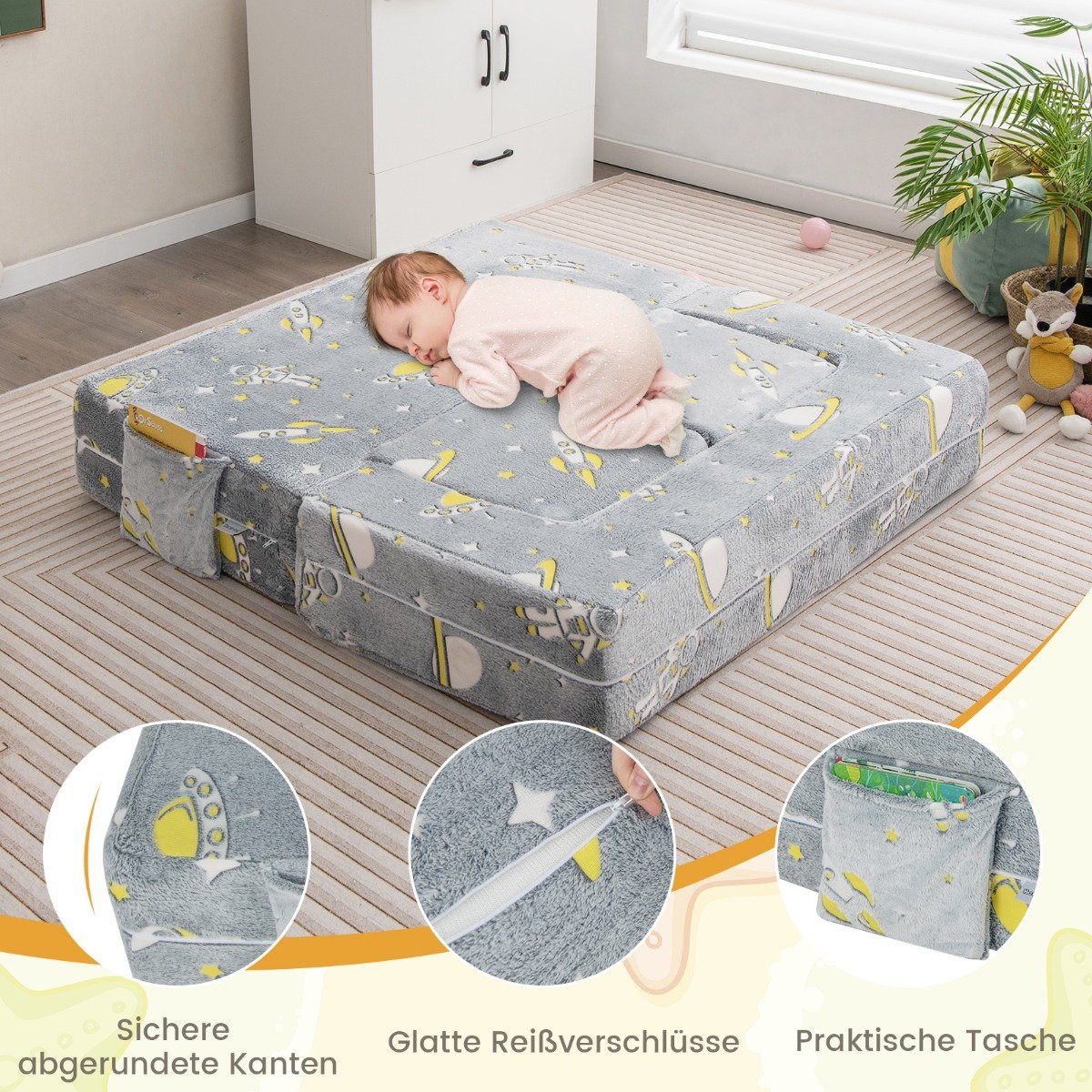 Poltrona infantil 2 em 1 que brilha no escuro, sofá infantil dobrável de veludo, sofá infantilPoltrona infantil 2 em 1 que brilha no escuro, sofá infantil dobrável de veludo, sofá infantil