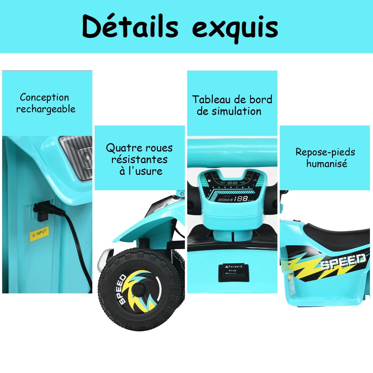 Quadriciclo elétrico infantil: realize os sonhos das crianças! Antigamente bicicletas, agora… quadriciclos – esses veículos de quatro rodas conquistam definitivamente os corações de jovens e idosos! Um quadriciclo “adulto” custa pelo menos PLN 1.000; você precisa ter pelo menos 14 anos para dirigi-lo. Felizmente, os pequenos também podem aproveitar a diversão de pilotar. O quadriciclo elétrico infantil é um veículo pequeno e seguro que pode ser usado por crianças a partir dos três anos de idade – claro, em um local seguro e sob a supervisão de adultos. Se o seu filho sonha com suas próprias quatro rodas, o quadriciclo elétrico infantil certamente será um presente dos sonhos que não vai estourar seu orçamento. Quadriciclo infantil: o poder da diversão em condições seguras. Embora possa parecer que um quadriciclo infantil apresenta alto risco de lesões, no caso de modelos elétricos adaptados à altura da criança, você não precisa se preocupar – quadriciclos a bateria para crianças são completamente seguros, desde que as crianças brinquem neles sob os cuidados de um adulto. Quadriciclos elétricos para crianças não atingem altas velocidades, mas certamente proporcionam muita diversão! Desta forma, os mais novos podem descobrir todos os recantos do jardim ou quintal. Quando se trata de quadriciclos baratos para crianças, nosso modelo merece atenção especial – é um veículo seguro e estável, projetado para os mais jovens. Quadriciclo elétrico infantil: escolha alta qualidade e segurança Preocupados com a segurança e o conforto das crianças, a construção do quadriciclo elétrico foi equipada com apoios para os pés especiais e um assento alto. Rodas largas e estáveis evitam capotamento e, ao mesmo tempo, absorvem os choques causados durante a condução. Eles se sairão perfeitamente não apenas no parquet da casa, mas também no pavimento ou nas pedras do calçamento. Não se esqueça do capacete – vale a pena desenvolver esse hábito saudável desde cedo. Características Fácil de usar: aprender a andar de quadriciclo elétrico é muito simples. Basta “ligar” o quadriciclo, pressionar os botões de avanço e ré e, em seguida, dirigir com o volante. Não é complicado e as crianças vão se divertir enquanto andam. Rodas resistentes ao desgaste: Com 4 rodas grandes, este quadriciclo possui um centro de gravidade baixo para uma condução estável. Além disso, as rodas são altamente resistentes à abrasão. Dessa forma, as crianças poderão pedalar em diferentes superfícies, como pisos de madeira, estradas pavimentadas, etc. Bateria de longa duração: Incluímos um carregador veicular na caixa. Em um quadriciclo elétrico carregado, as crianças podem pedalar por cerca de 50 minutos. Design à prova de crianças e alto conforto: o assento largo se adapta ao formato do corpo da criança e aumenta o conforto da condução. Há apoios para os pés em ambos os lados para facilitar a condução.