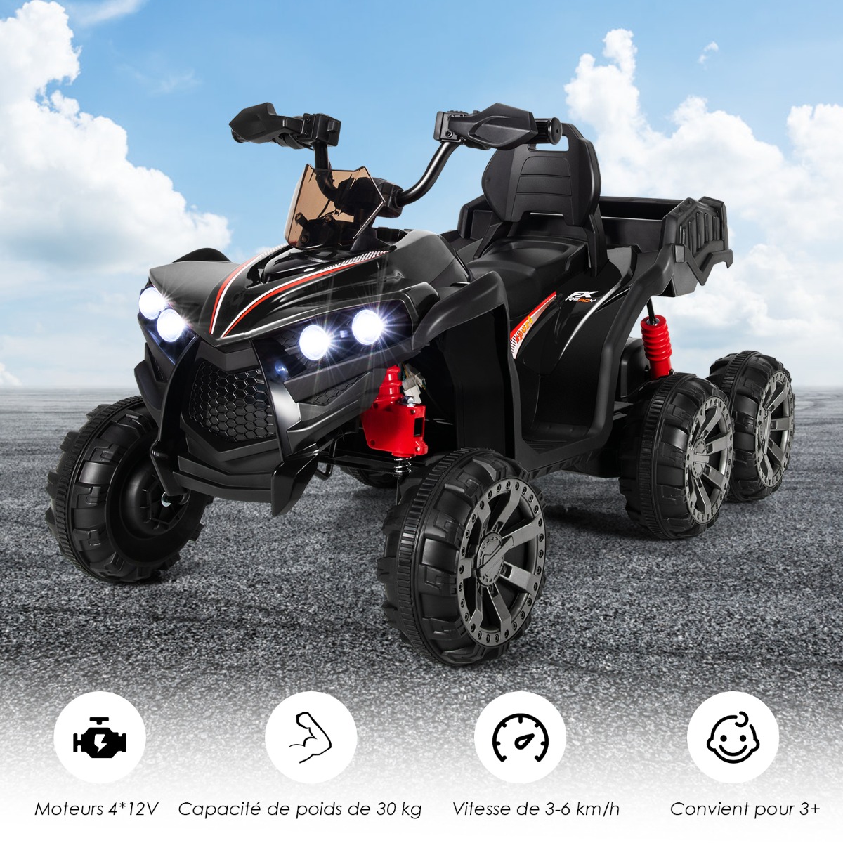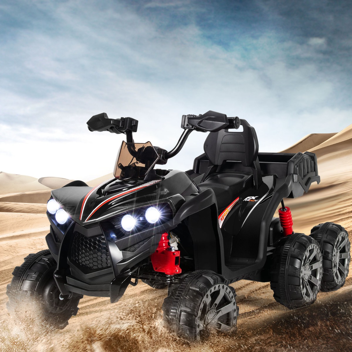 Quadriciclo elétrico infantil 12V com espaço de armazenamento e luzes LED, mini quadriciclo elétrico 3-6 km/h preto