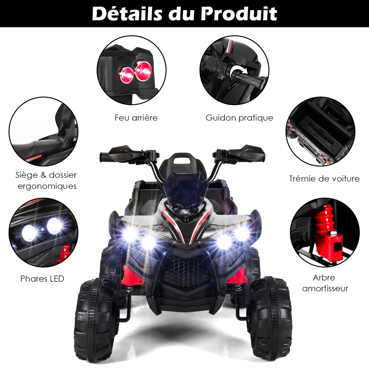 Quadriciclo elétrico infantil 12V com espaço de armazenamento e luzes LED, mini quadriciclo elétrico 3-6 km/h pretoQuadriciclo elétrico infantil 12V com espaço de armazenamento e luzes LED, mini quadriciclo elétrico 3-6 km/h preto