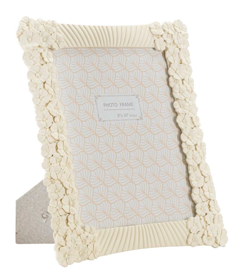 Moldura retangular em resina com linhas suaves e decorada com um conjunto de pequenas flores. Ele pode ser posicionado tanto horizontal quanto verticalmente. Dimensões da foto 20×25 cm.