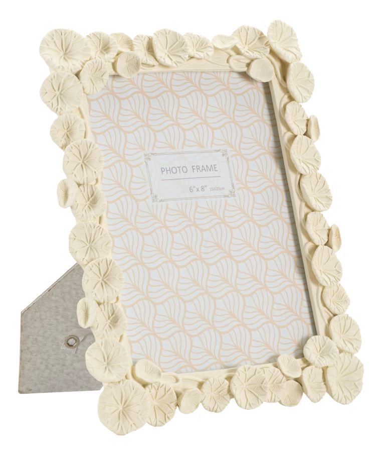 Moldura retangular de resina autônoma embelezada com um conjunto de folhas de lótus. Ele pode ser posicionado tanto horizontal quanto verticalmente. Dimensões da foto 15×20 cm.