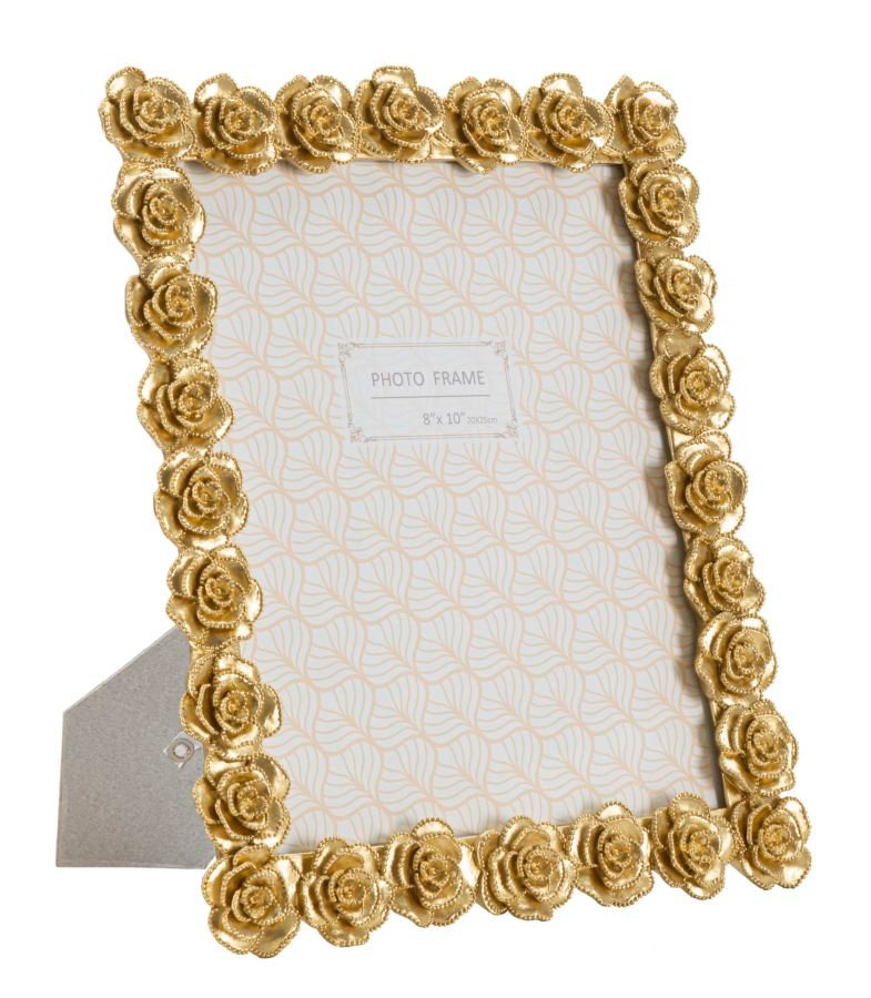 Moldura retangular independente em resina com desenho composto por um conjunto de rosas. Ele pode ser posicionado tanto horizontal quanto verticalmente. Dimensões da foto 20×25 cm.