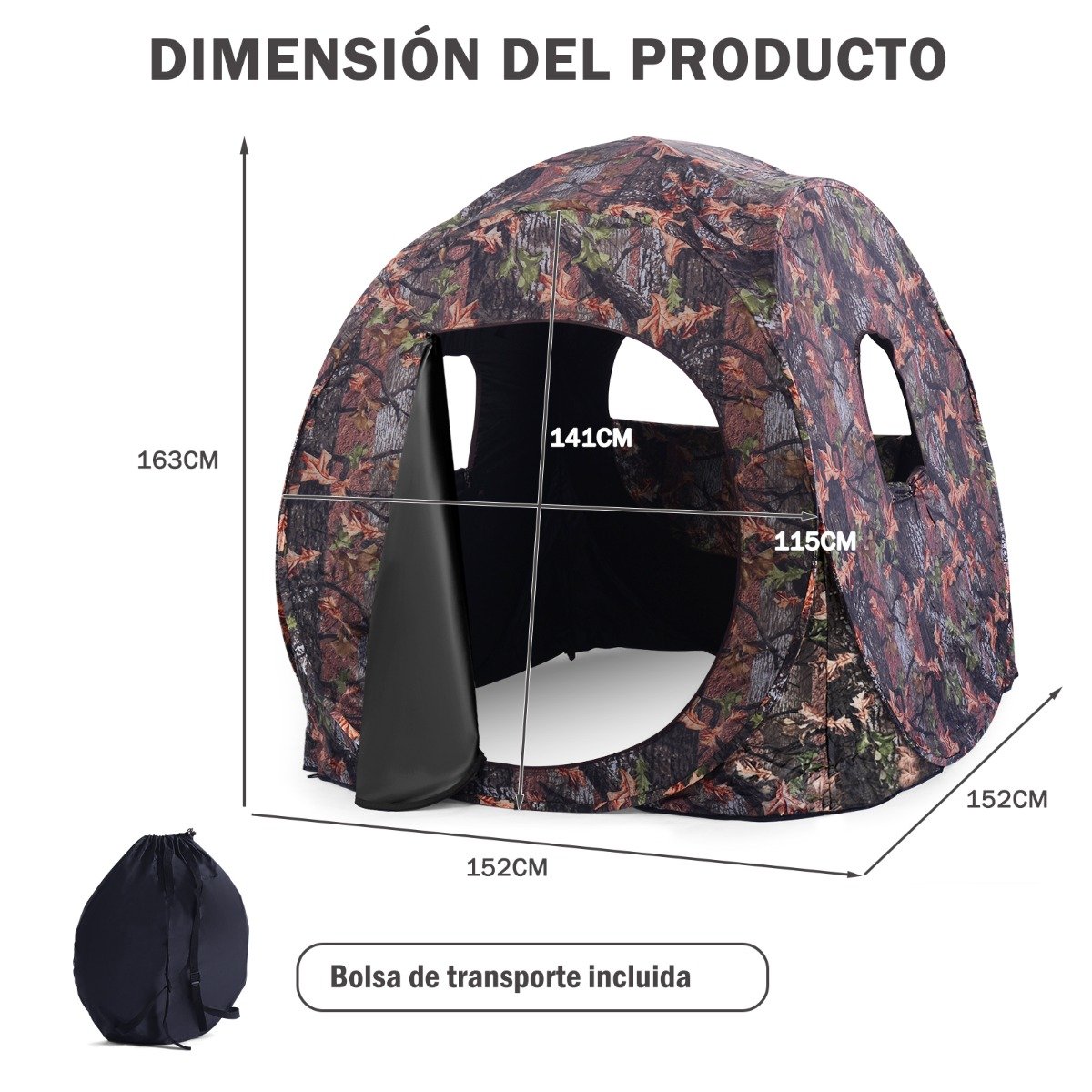 Cabana de caça dobrável para 3 pessoas com bolsa de transporte