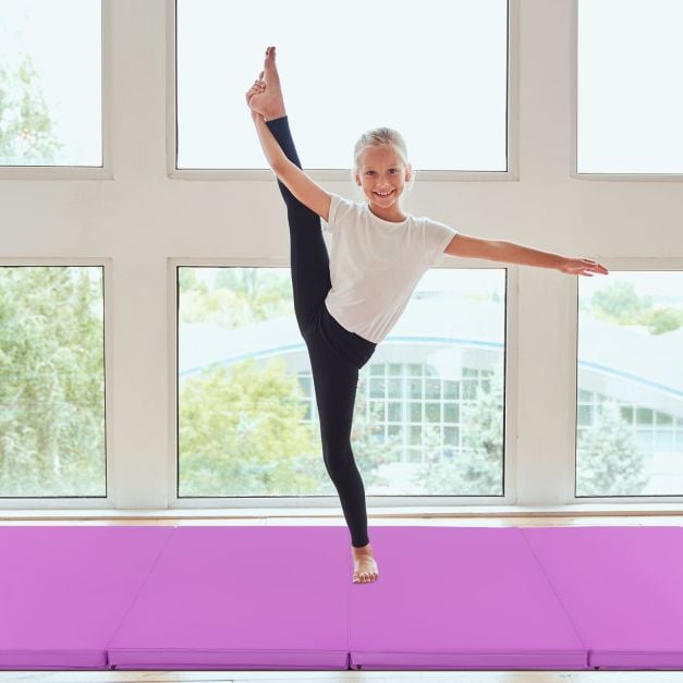 Tapete de ginástica dobrável de 2,4 x 1,2 metros (8 x 4 pés) – Roxo