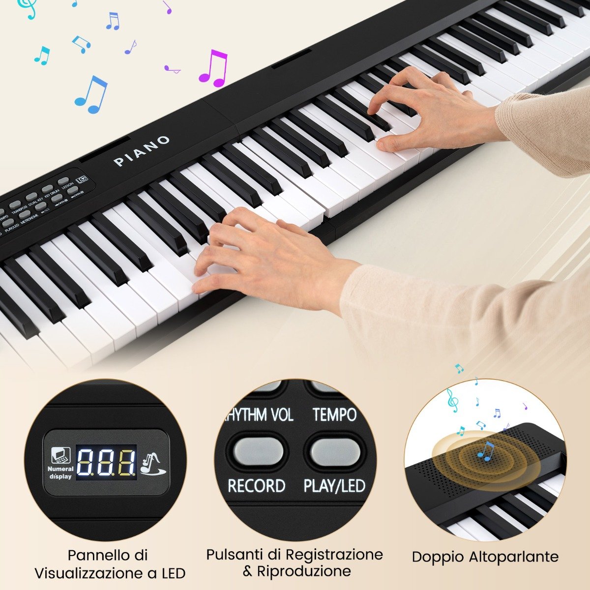 Teclado eletrônico dobrável com teclas semipesadas, função Split, pedal de sostenuto, teclado de piano de 88 teclas com alto-falantes duplos, preto.