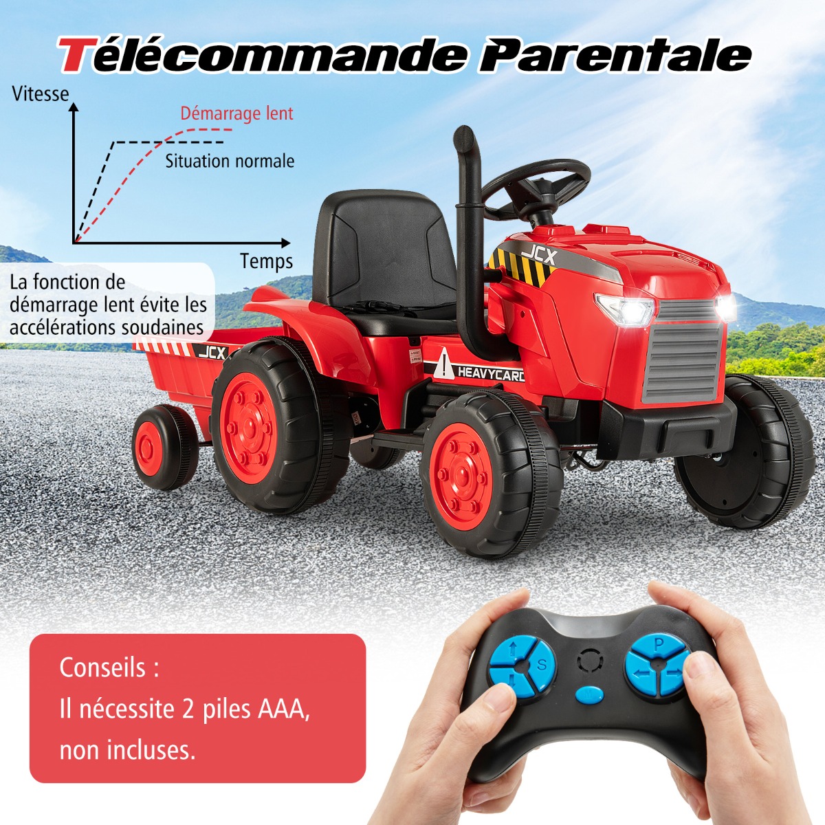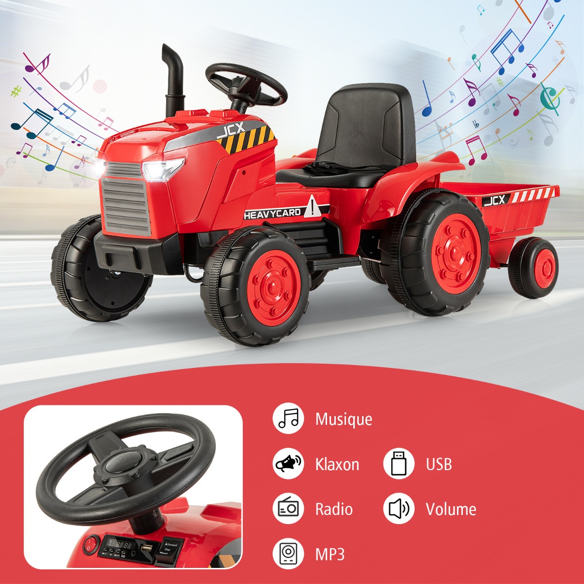 Trator elétrico infantil 2 em 1 com reboque e carrinho elétrico de brinquedo com controle remoto – Vermelho
