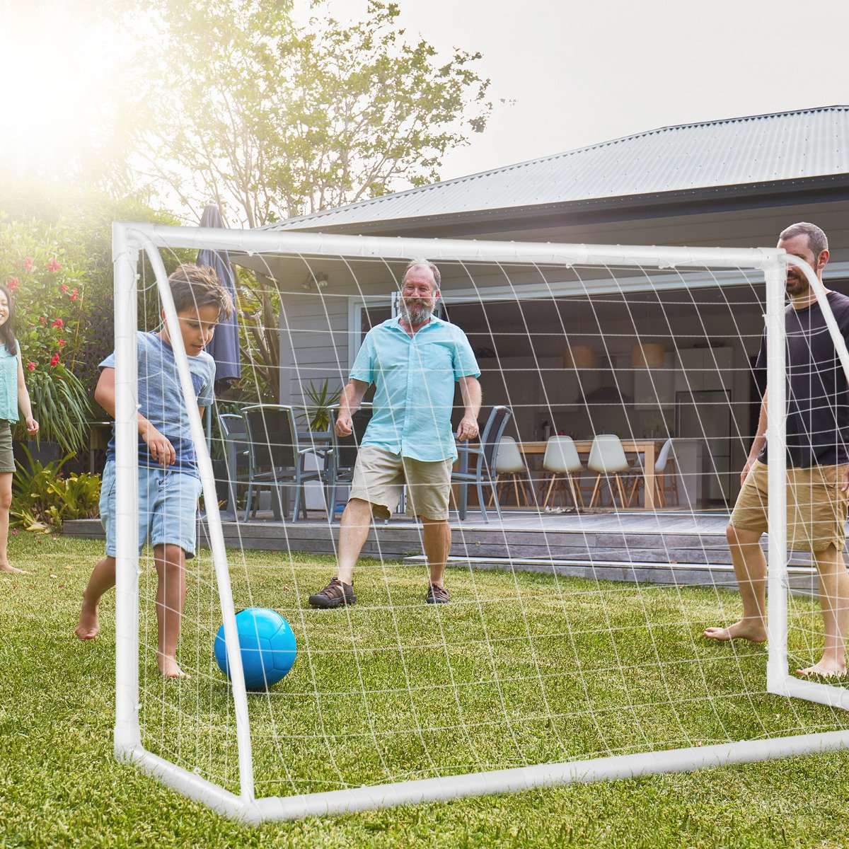 Exercite-se com diversão e brinque em qualquer lugar com a nossa trave de futebol portátil infantil! Nossa trave e rede portáteis exigem apenas 10 minutos de montagem com encaixe rápido e travas de pressão, sem necessidade de ferramentas. As redes reforçadas suportam uma chuva de chutes. A estabilidade da trave é garantida por 6 estacas para fixá-la no solo. A estrutura robusta e espessa possui um suporte traseiro para maior estabilidade. É a ferramenta ideal para crianças acima de 6 anos praticarem futebol, melhorando a força física, o trabalho em equipe e a diversão. Você pode montar um pequeno, porém realista, campo da Copa do Mundo da FIFA no seu quintal, escola, parque ou praia para o seu futuro craque do futebol. Destaques: Trave de Futebol Extra Resistente para Crianças: Esta trave de futebol infantil para todos os climas é estruturada com tubos de UPVC espessos e reforçada com conectores de junção. O suporte traseiro garante maior estabilidade, e as 6 estacas inclusas mantêm a trave no lugar. Ela não deforma, racha ou tomba facilmente. Rede de encaixe rápido e alta resistência: A rede da baliza de futebol é fixada perfeitamente às traves através de 18 fixadores, permitindo uma montagem em segundos. Além disso, é trançada com várias cordas para garantir alta resistência e suportar uma chuva de chutes. Montagem em 10 minutos: Graças ao sistema de montagem rápida, você pode montar o campo de futebol em apenas 10 minutos, sem a necessidade de ferramentas. A desmontagem é tão rápida quanto a montagem. E a simplicidade de montagem e desmontagem significa que o campo de futebol estará sempre à mão. Realista para diversas aplicações: Com formato retangular, esta baliza de futebol infantil proporciona um alvo mais realista e a sensação de uma baliza de futebol profissional. É perfeita para ser montada no quintal de casa, na praia, no parque e no pátio da escola, sendo ideal para as crianças brincarem em qualquer lugar. Aumenta a diversão infantil: Correndo, chutando e passando a bola, as crianças desenvolvem agilidade, força física e espírito de equipe. Reduzindo significativamente o tempo gasto em frente às telas e enriquecendo as férias, este gol de futebol portátil com certificação ASTM é o equipamento perfeito para que futuros craques do futebol com mais de 6 anos possam praticar e treinar. Características: Fácil de montar com postes de encaixe e rede de fixação rápida. Ideal para prática e treinamento de futebol para crianças a partir de 6 anos. Estrutura estável em UPVC com conexão por juntas e estacas de fixação no solo. Rede resistente para suportar uma chuva de chutes. Alvo retangular de 183 x 120 cm para uma partida de futebol infantil realista. Adequado para uso interno e externo, praia, quintal e muito mais. Reduza o tempo gasto em frente às telas e aumente a diversão infantil.