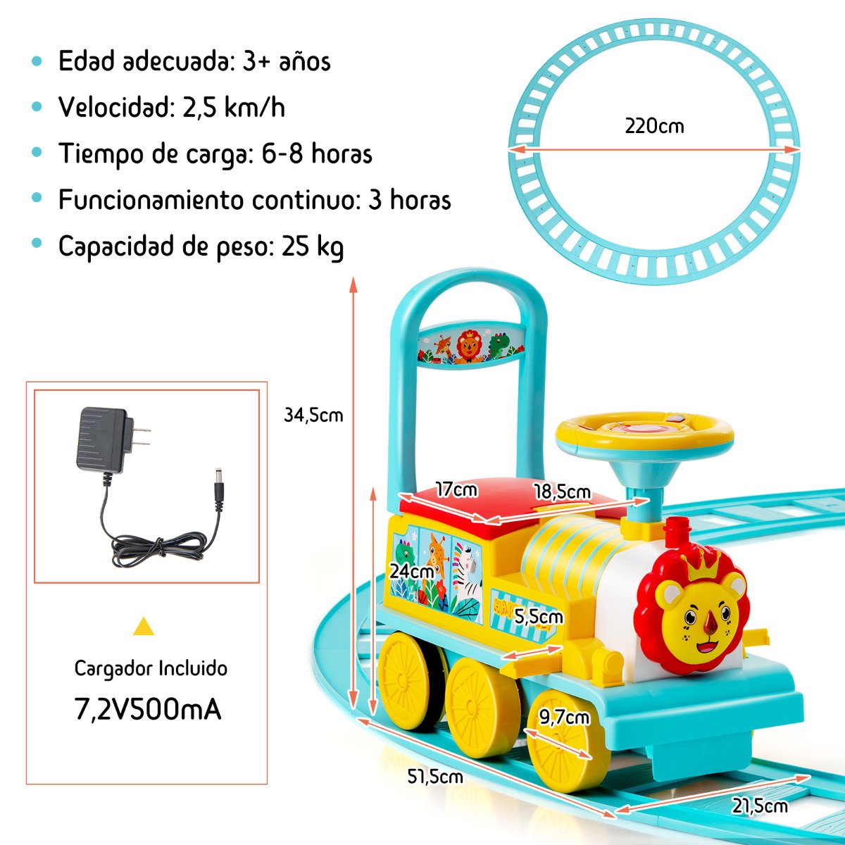 Trem elétrico infantil com trilhos Nosso carrinho de passeio é ideal para crianças de 18 a 26 meses. Por um lado, 6 rodas antiderrapantes e resistentes ao desgaste garantem um passeio suave e seguro, e o volante ajuda você a mudar de direção. O design de empurrar permite que as crianças movam os pés em qualquer superfície plana, como uma estrada de concreto, piso de madeira ou estrada de tijolos. Além disso, o contêiner removível pode ser usado para armazenar brinquedos, lanches e livros. A aparência do caminhão é chamativa; ele tem luzes dianteiras, música e um alarme para entreter as crianças. Por outro lado, o assento e o encosto largos proporcionam conforto e segurança adicionais. O assento tem capacidade de carga de até 20 kg e o contêiner de até 10 kg. As crianças podem exercitar os músculos das pernas e melhorar a coordenação mão-pé. Recipiente removível: inclui um recipiente removível, para que as crianças possam facilmente armazenar brinquedos, flores e lanches. Recomendamos que você não armazene itens com peso superior a 10 kg no contêiner. Se necessário, você pode remover o compartimento girando o interruptor de ligação. Passeio suave e seguro: Com 6 rodas antiderrapantes e resistentes ao desgaste, nosso carrinho de brinquedo oferece às crianças um passeio suave. Graças às rodas duráveis, nosso caminhão de brinquedo é perfeito para estradas de concreto, pisos de madeira e estradas de tijolos. Além disso, o design do tipo push permite que as crianças se movam para frente e para trás com os pés para máxima segurança. Diversas funções de entretenimento: o volante permite que as crianças controlem livremente a direção. Além disso, o design realista da van infantil, luzes dianteiras, alarme e música tornam a direção divertida para elas, e elas podem finalmente fingir que estão dirigindo um caminhão de verdade. Assento largo e ergonômico: Este carrinho de brinquedo com volante possui um assento largo e ergonômico que oferece o máximo conforto às crianças. Feito de PP de alta qualidade e com capacidade de carga de 20 kg, o assento suporta perfeitamente as crianças. Além disso, esta van possui um encosto que evita que as crianças se inclinem para trás. O presente perfeito para crianças de 18 a 36 meses: nossa van com volante é o presente perfeito para meninos e meninas. O design push ajuda crianças de 18 a 36 meses a exercitar os músculos das pernas enquanto se movem para a frente. Também tem um efeito positivo na coordenação mão-pé e nas habilidades motoras finas. Características: Design realista, luzes frontais, alarme e música para aumentar a diversão Caixa de armazenamento removível para brinquedos, flores e lanches 6 rodas antiderrapantes e resistentes ao desgaste garantem um passeio suave PP de alta qualidade e durável Ideal para estradas de concreto, pisos de madeira e estradas de tijolos Design de empurrar para exercitar os músculos das pernas Oferta diretamente do fabricante Assento largo e ergonômico que suporta até 20 kg Um encosto seguro que não reclina para trás Ideal para crianças de 18 a 36 meses Bateria oculta para evitar que crianças a removam As crianças aprenderão a andar e desenvolverão a coordenação mão-pé