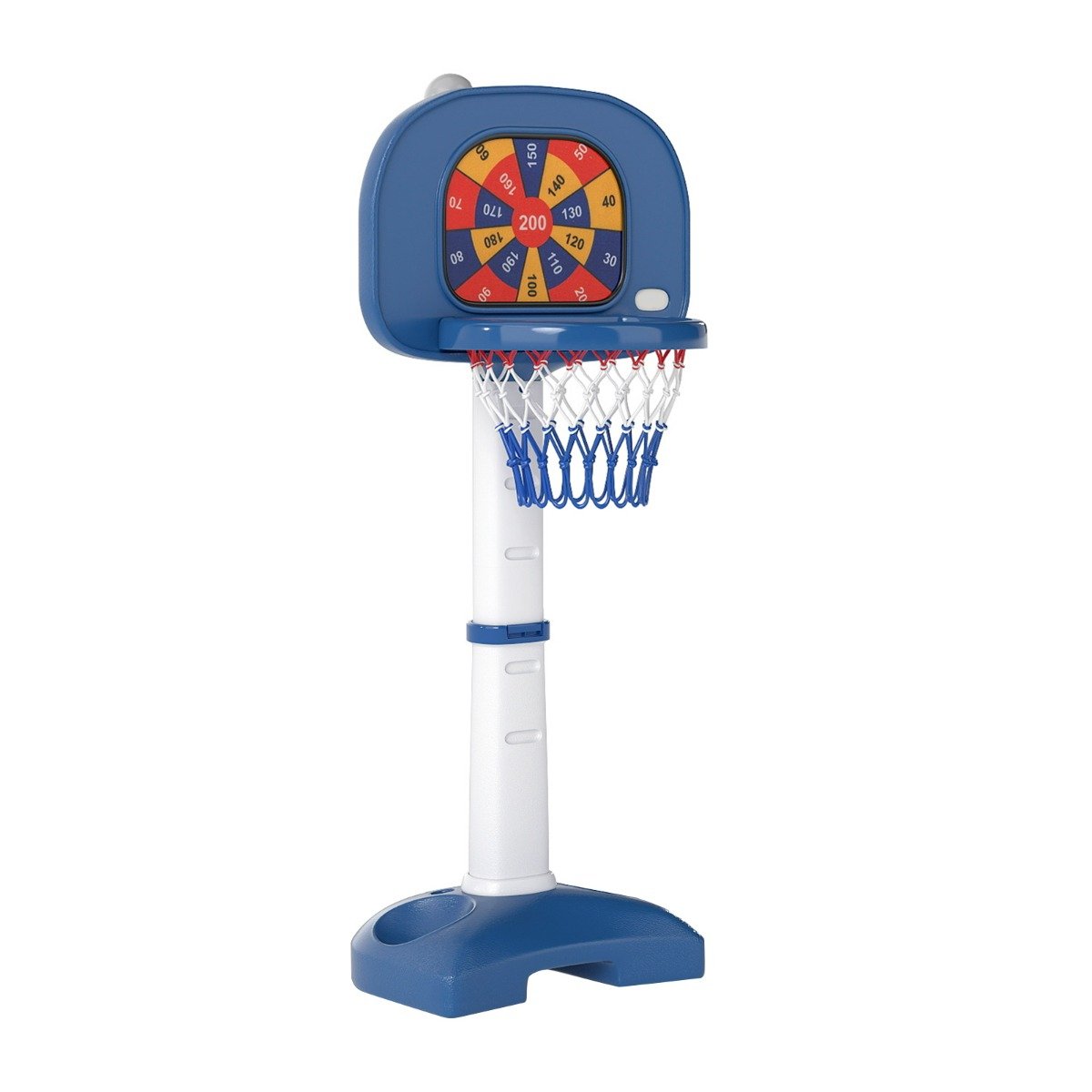 Diversão sem fim com nossa divertida cesta de basquete! Projetado com 4 modos de jogo, este centro de atividades oferece quatro modos de diversão e acessórios completos, incluindo uma bola de basquete, 2 argolas, um taco de golfe, 2 bolas de golfe, 2 bolas adesivas e um inflador. Você também pode ajustar a altura da cesta para melhor atender às necessidades do seu filho. Feita de tubos de metal à prova d’água e resistentes à ferrugem, nossa barra de ginástica promete durabilidade duradoura, além de ser fácil de limpar. Além disso, este brinquedo de basquete pode aumentar significativamente o equilíbrio e as habilidades motoras das crianças, permitindo que elas cresçam brincando. Conjunto de jogos multifuncional 4 em 1: Esta cesta de basquete oferece 4 opções de jogos intercambiáveis, incluindo basquete, arremesso de argolas, minigolfe e bola adesiva. As crianças podem desenvolver uma variedade de hobbies esportivos, incentivando o crescimento saudável. Estabilidade e função de armazenamento: A base do centro de atividades pode ser preenchida com água ou areia para maior estabilidade. Além disso, o material PP à prova d’água garante durabilidade para brincadeiras em ambientes internos e externos. As bolas podem ser armazenadas na área de armazenamento da base para evitar perdas. Ajuste de altura em 5 níveis: A cesta de basquete pode ser facilmente ajustada de 111 a 146 cm em 5 posições. À medida que seus filhos crescem, você pode escolher a altura que melhor se adapta a eles, adequada para crianças de 3 anos ou mais. Escolha perfeita para presente: Além de ser divertida, esta cesta de basquete estimulará os vários potenciais do seu filho, promovendo equilíbrio, força, habilidades motoras, coordenação motora e concentração por meio de atividades esportivas emocionantes. Fácil de montar: Instruções detalhadas passo a passo estão incluídas com o produto e todas as peças são pré-numeradas. A cesta de basquete pode ser montada rapidamente sem ferramentas adicionais. Além disso, a superfície à prova d’água pode ser facilmente limpa com um pano úmido. Características: Altura ajustável para se adequar a jogadores de diferentes idades Feito de materiais de HDPE e PP de qualidade para durabilidade e uso duradouro 4 opções de jogo: basquete, bola pegajosa, arremesso de argolas e minigolfe Base estável e segura que pode ser preenchida com areia ou água Espaço para taco de golfe e basquete na base Promove os múltiplos potenciais das crianças Fácil de instalar sem ferramentas extras