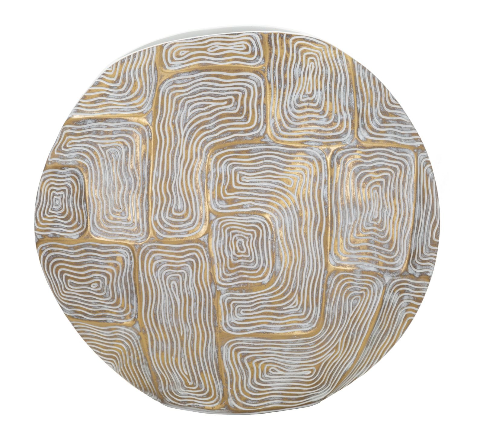 Jarra de resina elegantemente decorada com formas geométricas de linhas suaves e arredondadas.