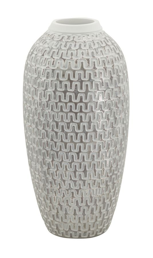 Jarra de resina elegantemente decorada com entalhes que lembram castelos medievais.