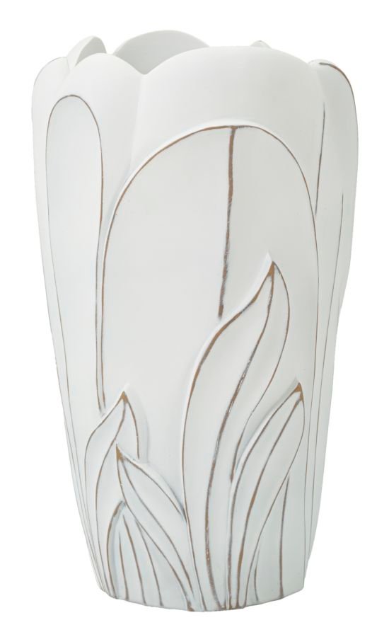 Jarra de cerâmica de desenho suave e sinuoso com elegantes decorações em relevo.